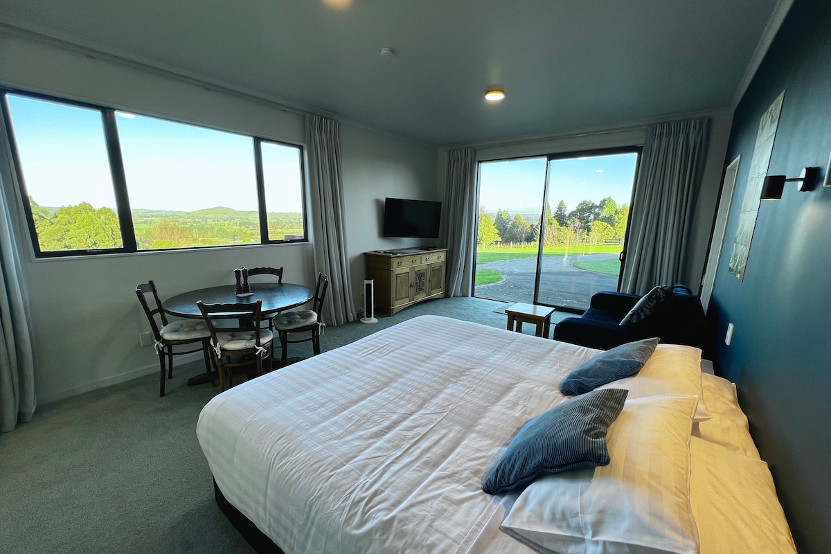 Placed on top of Lansdowne Hill with superb rural views, this self-contained unit is close to Masterton Golf Club, Lansdowne Trails and Mountain Bike Park, and town centre only 3K away. Bed arrangement is one Super King which can be re-configured to two Single beds on request. Complimentary tea, coffee, milk, yoghurt and cereal. There is a single induction hot-plate with fry-pan and pot with steamer available.