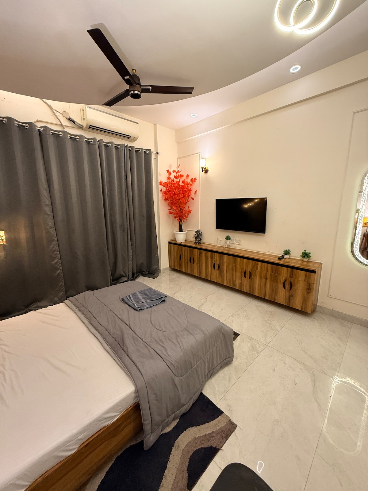 🌆 Luxury High-Floor City Skyline Retreat | Near Gaur City Mall Experience comfort, privacy, and elevated living in this beautifully designed studio. Ideal for couples, solo travellers, and business guests, this space is thoughtfully curated to deliver a peaceful stay while keeping you close to major conveniences, business hubs, and lifestyle destinations. Whether you’re visiting for work, a short city escape, or a relaxing weekend, this apartment offers the perfect balance of comfort and luxury