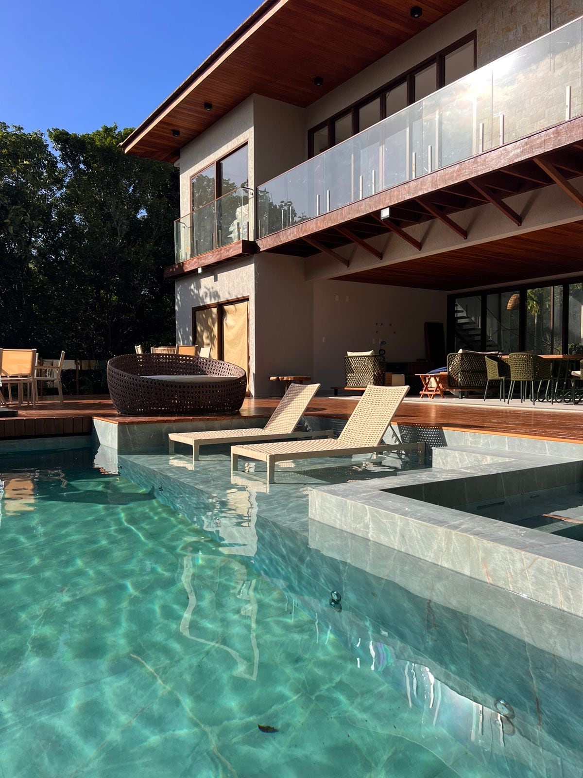 CASA OCEANO- PRAIA DO FORTE | BAHÍA | BRASIL Disfruta de días inolvidables en esta mansión de alta gama, en el condominio Praia Bella, con acceso directo a la playa. Hay 6 dormitorios con aire acondicionado (5 suites + 1 dormitorio), sala de estar/TV, cocina con isla integrada, barbacoa, horno de leña y piscina infinita climatizada. El condominio ofrece un club de alta gama con piscinas, un bar, un salón de baile, un espacio para mascotas, un espacio para niños, una barbacoa, una sala de masajes, tenis de playa, una cancha para niños y un gimnasio.