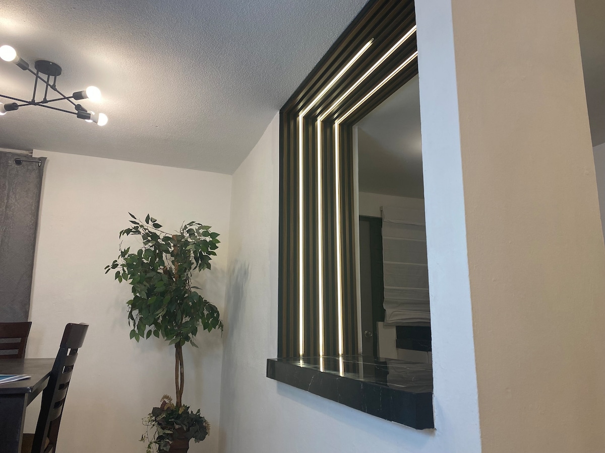 Cómodo loft con todo lo necesario para estancias largas y viajeros de negocios - Cocina equipada - Escritorio para trabajar - Internet de 150MB de la compañía Starlink - Aire acondicionado frio/caliente - Cama matrimonial - TV 42" con Netflix - Mesa de comedor con 2 sillas - Baño con espejo botiquín, toallas y jabon - Excelente ubicación cerca de avenidas principales, a 7 minutos de Puentes Internacionales y del Consulado, a 3 minutos del Periférico. - Comprobante fiscal disponible