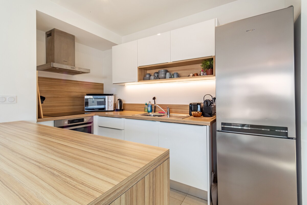 ✨ Sumérgete en un capullo elegante a dos pasos de la playa. Escape Marine le da la bienvenida en un apartamento luminoso de 48 m², clasificado 4★, con balcón, aire acondicionado, estacionamiento privado y acceso directo a la playa a través de la residencia. Disfrute de una estancia con los pies en la arena, en familia, con amigos o incluso para teletrabajar disfrutando del aire marino, mientras está en el lado de la calle, al abrigo del ajetreo y el bullicio del paseo marítimo.