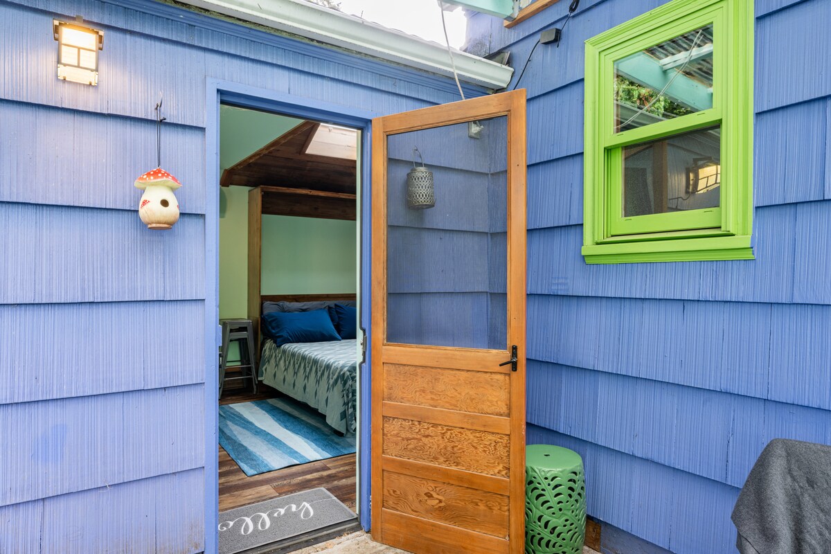 Private cottage with views of the garden. High ceilings, lots of natural light and warm accents. Stocked kitchenette. Four, friendly cats waiting to visit in the garden and three, suspicious, but friendly, hens in the chicken coop. Tranquil garden with fruit tees, flowers, bubbling fountain, chimes, and sheltered, cozy seating. Nearby food, drink, shopping and recreation options. Local recommendations. Your home away from home! Ask about renting our 2023 Toyota Sienna, hybrid minivan.