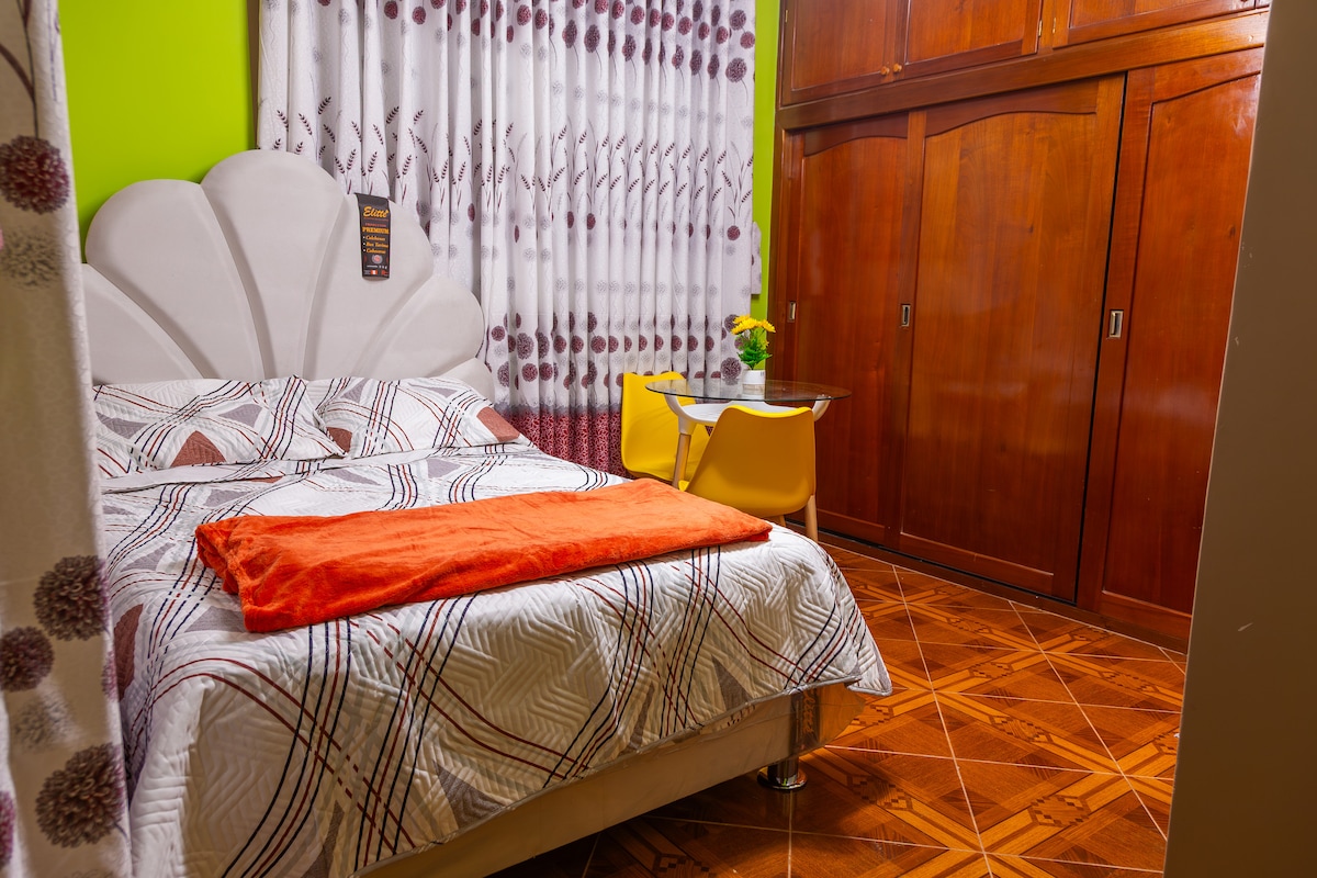 Quédate y siéntete como en casa, y en el centro de Satipo, cerca a todo lugar caminando, a tres cuadras de la plaza. La casa está en el 2do piso, es un lugar tranquilo, acogedor y muy privado. Cuenta con un dormitorio con 2 camas de dos plazas cada uno, y un ambiente para : cocina-comedor, además de un baño completo. En la cocina tienes a tu disposición una refrigeradora, cocina, horno o microhondas, hervidor de agua, ollas, menaje etc,