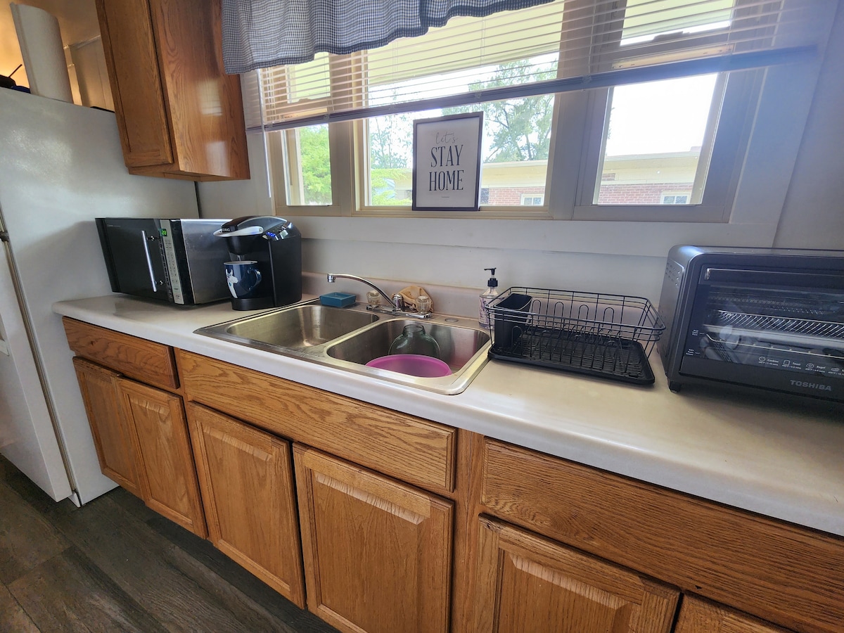 ¡Este piso de mi casa es todo tuyo! Estudio no compartido, propiedad para no fumadores, patio trasero completamente cercado. Por favor, elige mi casa para ti, no solo para tu perro; disfruta de una cocina completa y electrodomésticos, 1 cama futón de tamaño completo, televisión por cable (básica), lavandería y baño. Es una vida tranquila en una fosa séptica con agua de pozo. ¡Te damos la bienvenida al país! Limpio, sí, pero vivió y amó. Wifi limitado sin streaming. Descuentos semanales y mensuales. Aproximadamente a 5 millas de la I80 y a 21 millas de Starved Rock. MIRA UN MAPA. No puedo cambiar mi ubicación.