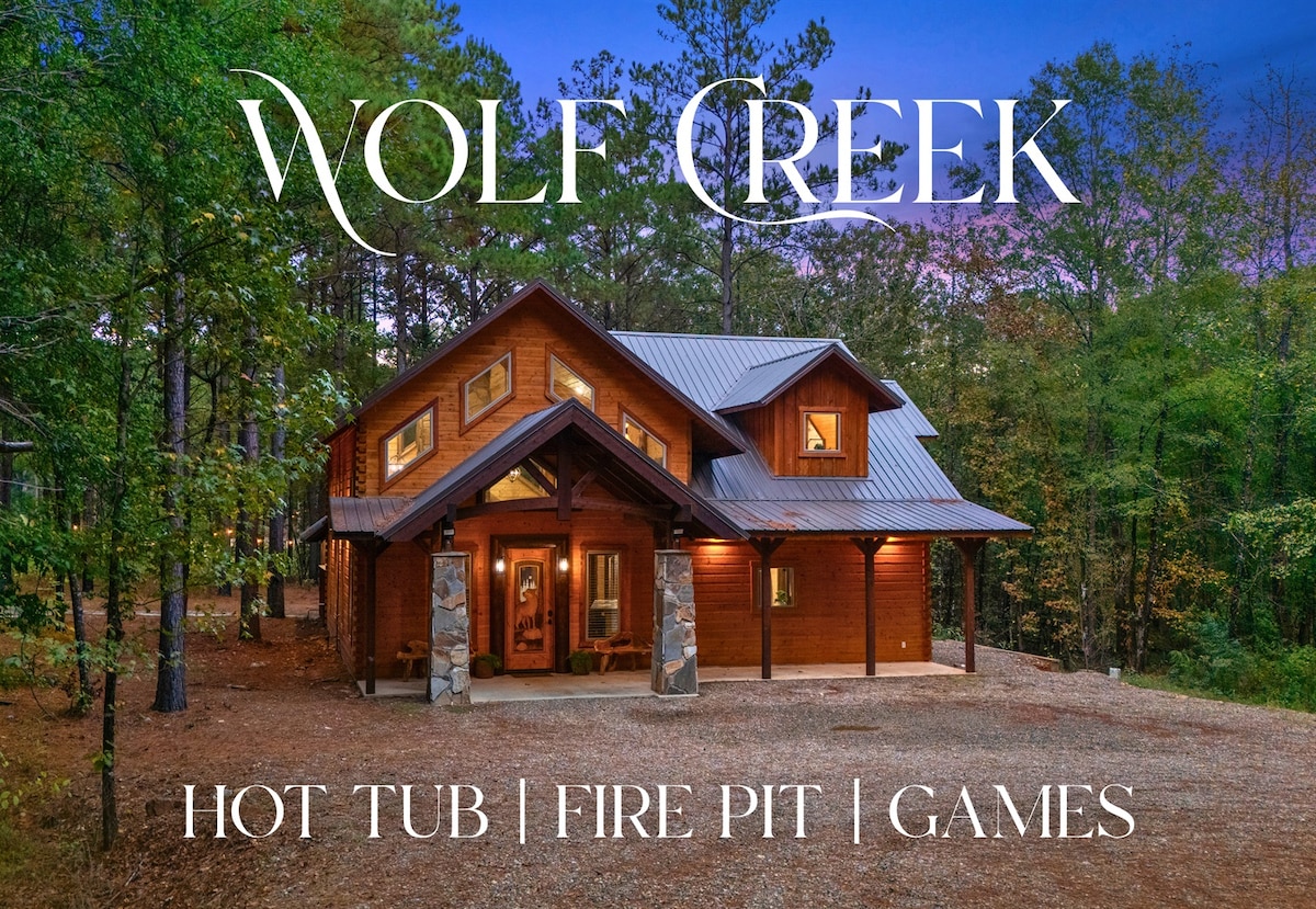 Cabaña de lujo romántica en 1,5 acres privados en Broken Bow. Cuenta con una lujosa cama tamaño king, jacuzzi extragrande, ducha doble estilo spa, bañera de inmersión, chimeneas interiores/exteriores y sendero privado. Ideal para parejas, lunas de miel o familias pequeñas. Construido en 2022 con diseño abierto, sofá cama de diseño y acabados de alta gama. Rodeada de naturaleza, pero a pocos minutos de senderismo, bodegas y Broken Bow Lake. Calificado como el Favorito de los huéspedes de Airbnb, Rare Find y 8x Superanfitrión. Reserva ahora los fines de semana y las mejores fechas van rápido.