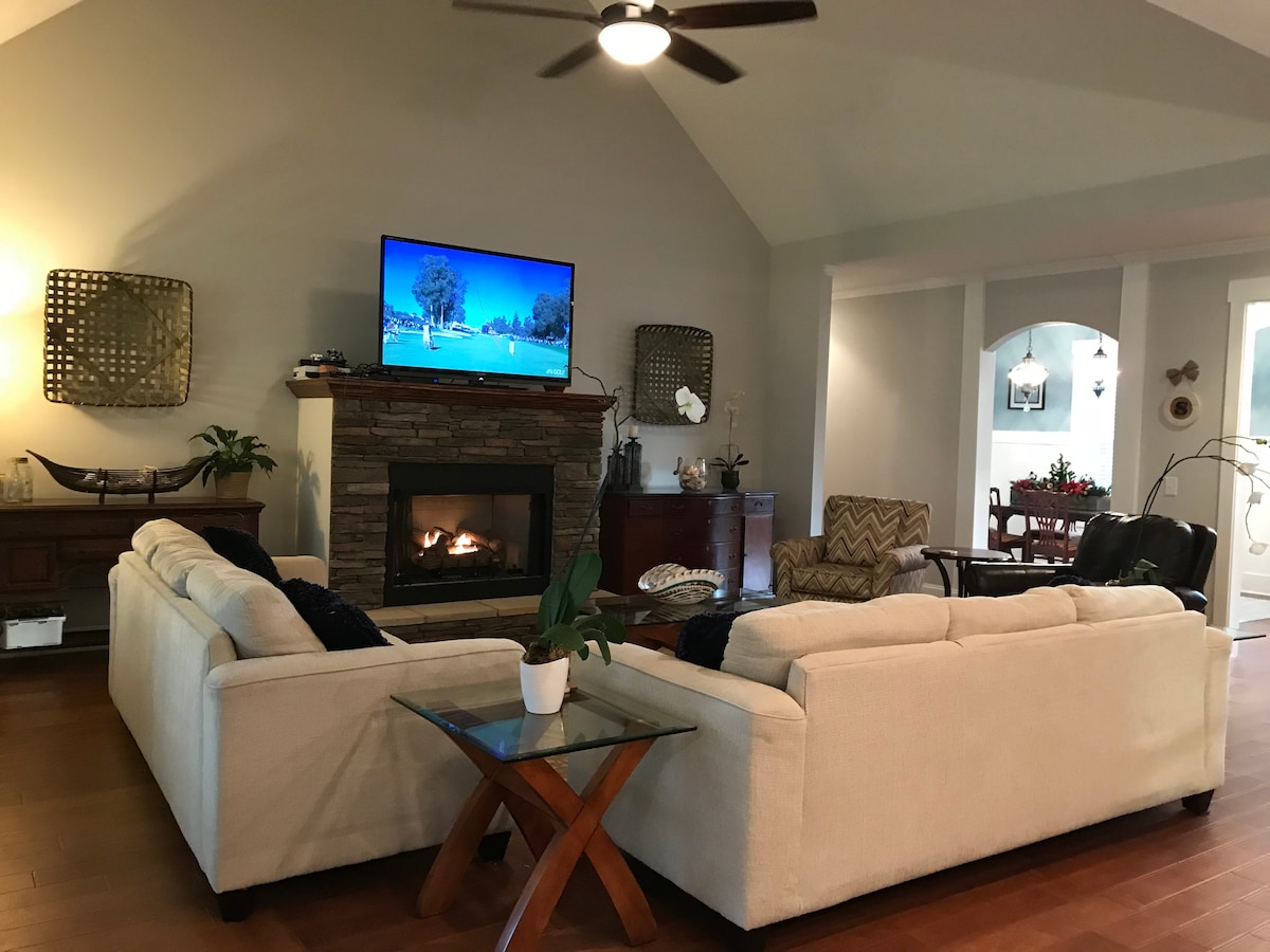 Peaceful countryside accommodations during The Masters while only 30 minutes from Augusta National! Convenient to Atlanta, cutting drive time by 30 minutes+ vs. other Augusta areas. We’re experienced Masters hosts that make every effort to make your stay as enjoyable as possible. Relax in a modern, spacious interior or on the back porch overlooking a private, serene wooded pond. You can also get your workout in the dedicated fitness room. You will love your stay!