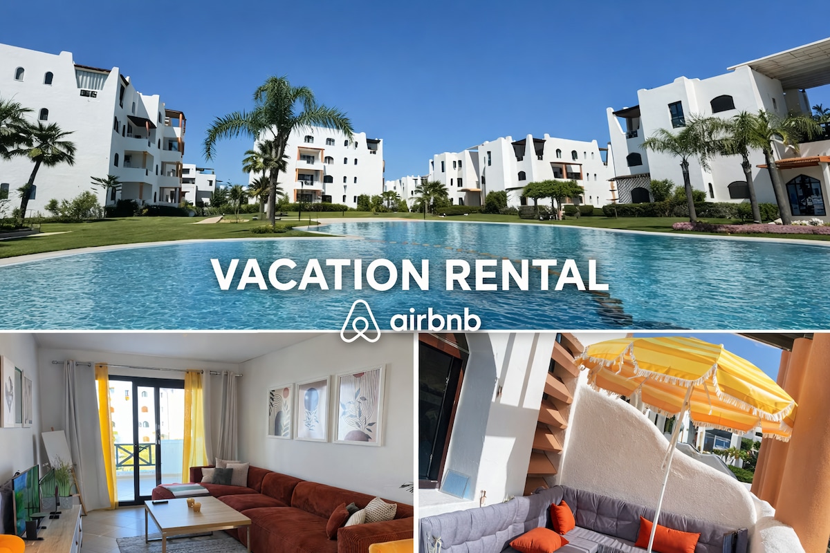 Appartement de rêve avec vue mer & piscine à Cabo Negro, Maroc. Suite parentale, chambre enfants, cuisine équipée, salon lumineux avec TV connectée, salle à manger 8 pers. Résidence avec 2 grandes piscines Toboggan, terrains mini foot, pé, aire de jeux. Accès rapide plage, restaurants, commerces, Parc Aquatique, Quad, cheval, parcours de golf. Parking et service livraison (Glovo) disponibles. Idéal pour des vacances en famille. Attention piscine non opérationnel en hiver à partir du 1/10 au 15/5