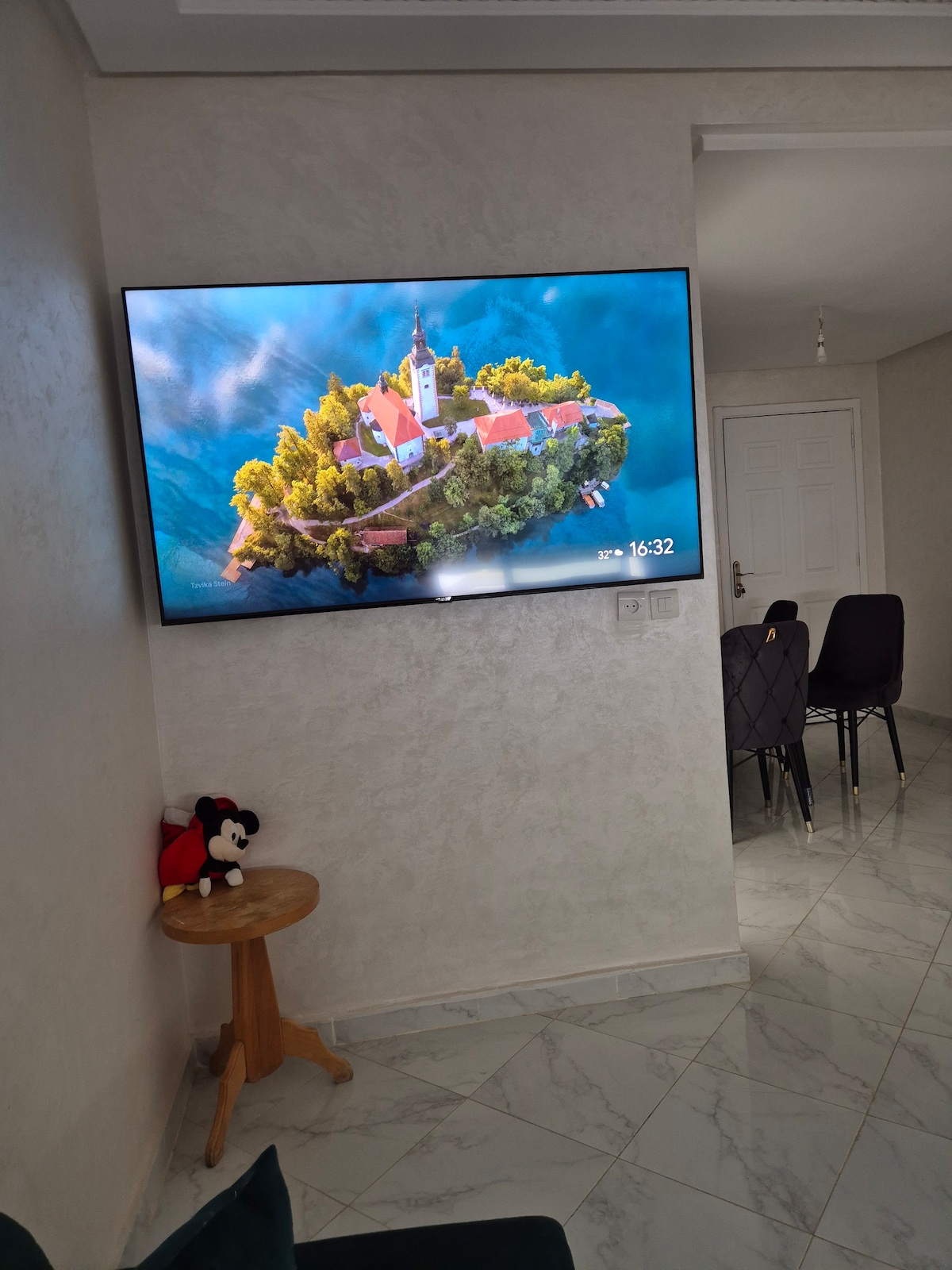 Apartamento nuevo en alquiler para familias, limpio, muy soleado y con una hermosa vista despejada, barrio tranquilo y seguro. Idealmente situado a 200 m de la carretera nacional, a 3 km de la autopista y a 50 m del Hammam Spa Sport Al Wafae. A solo 1,7 km de Coco Park y cerca de todos los servicios y centros comerciales. Este alojamiento tranquilo garantiza una estancia relajante para toda la familia. Cocina equipada (horno, microondas, nevera, utensilios...) Lavadora, aire acondicionado/calefacción TV Smart