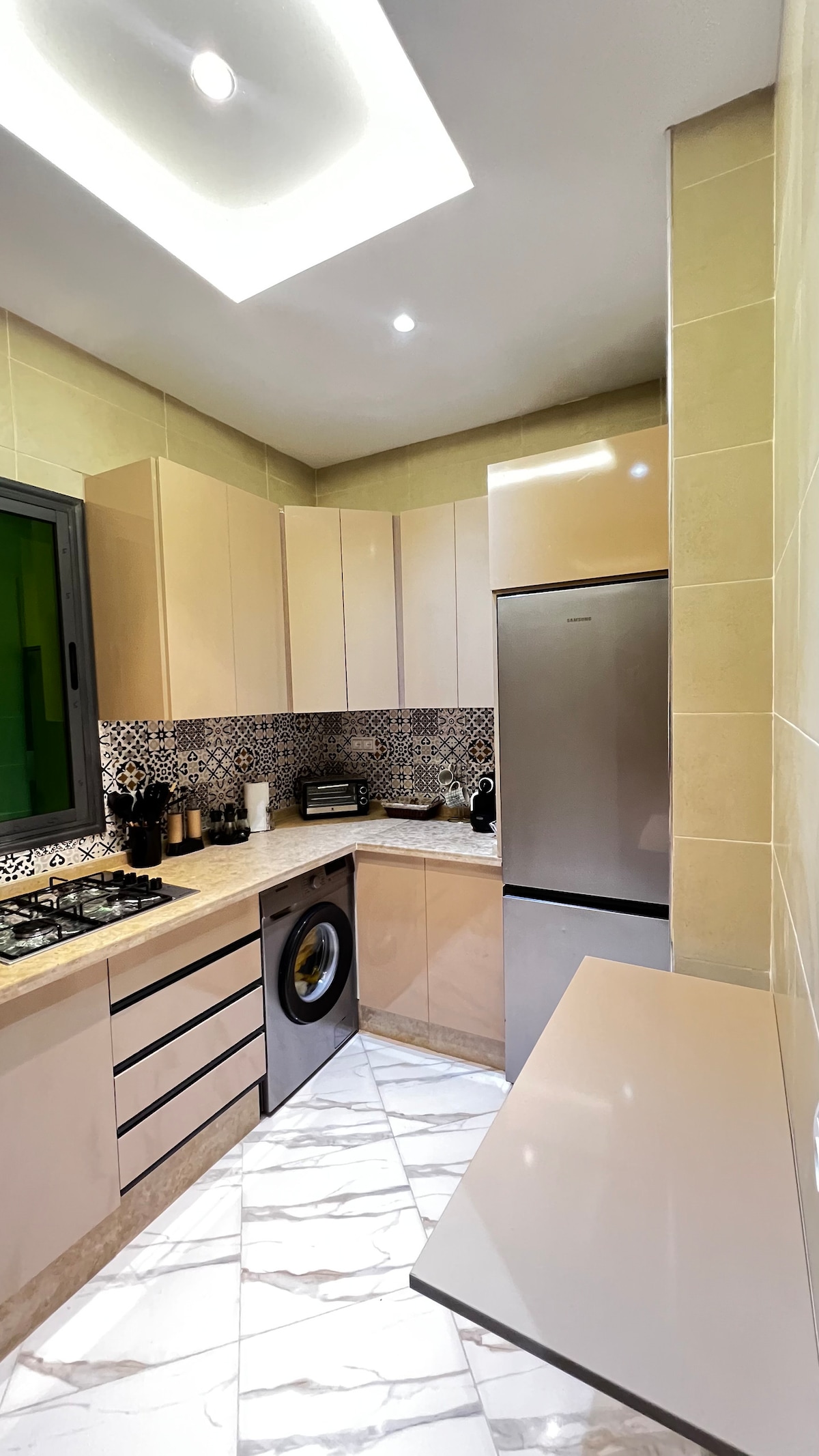 🤩Wow effect assuré🤩 Plus qu'un logement : UNE EXPÉRIENCE Vivez là à 💯% Jacuzzi & sauna pour une détente absolue après vos visites. 3 chambres climatisées, TV et literie de luxe : king, queen et lits superposés. Grand salon multi-thèmes avec écran géant : Netflix et Amazon Prime. Cuisine ultra équipée et WIFI haut débit. En plein centre ville nouvelle, accès facile aux lieux historiques, restaurants, cafés et commerces. Couples marocains non mariés pas acceptés.