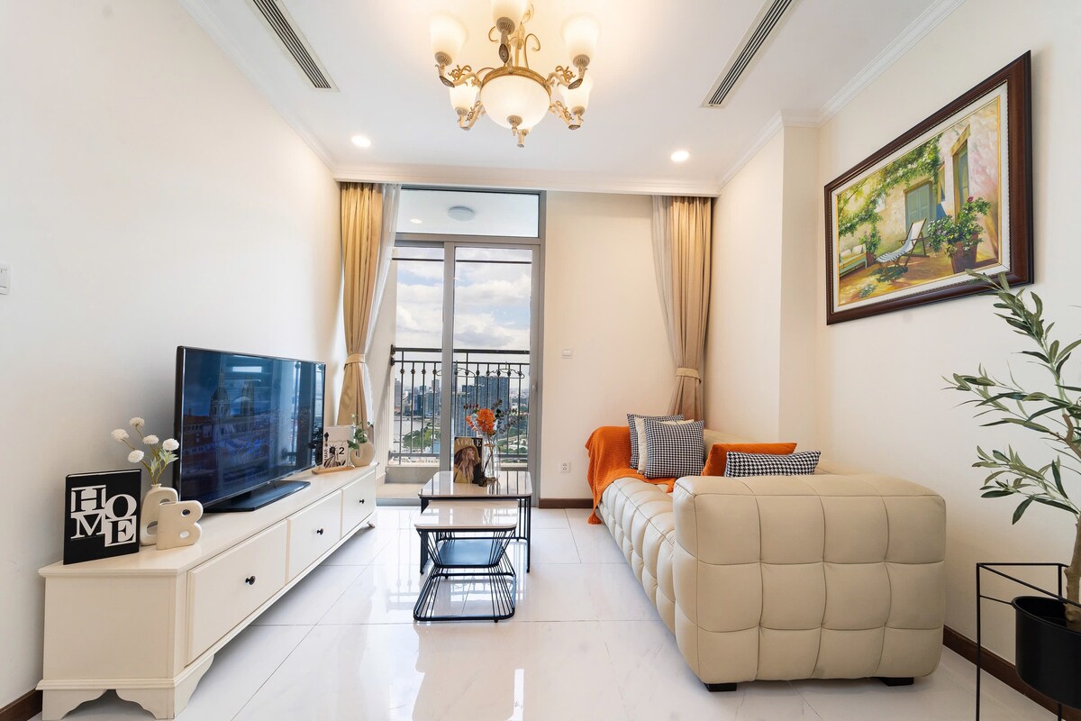Luxury 5* The Opera Residence Corner Apartment by ChiHome - River View Bason District 1, The LandMark 81, The Galleria, The Mett Office, District 2 Sala Thiso Mall. - Torre B, Scala, nivel 1x unidad 10 - Tamaño: 70 m2 (unidad de esquina) - Incluye 2 dormitorios, 2WC, cómodos para alojarse de 2 a 4 personas. - Televisión inteligente de 65 pulgadas con Netflix y YouTube - Sofá, sillón, mesa de té. - Mesa de comedor con 4 sillas. - Utensilios de cocina completos. - Internet inalámbrico de alta velocidad disponible. • Aire acondicionado para toda la casa - Acceso 24/7 al edificio, los 7 días de la semana.