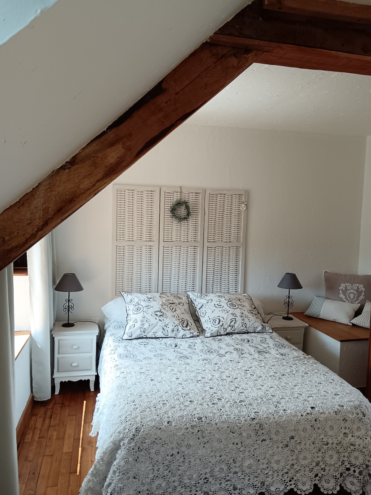 Una pequeña casa de madera con su jardín tranquilo, en el corazón de una granja de hortalizas orgánicas, Con una ubicación ideal para practicar senderismo, admirar los caminos hundidos, los bosques, los bonitos prados y los arroyos o simplemente relajarse. Es una invitación a la desconexión y al regreso a la naturaleza. Desde la terraza orientada al sur con barbacoa, mesa de comedor, muebles de jardín… podrá observar la colina, el bosque frente a usted y dejar que el canto de los pájaros le meza.
