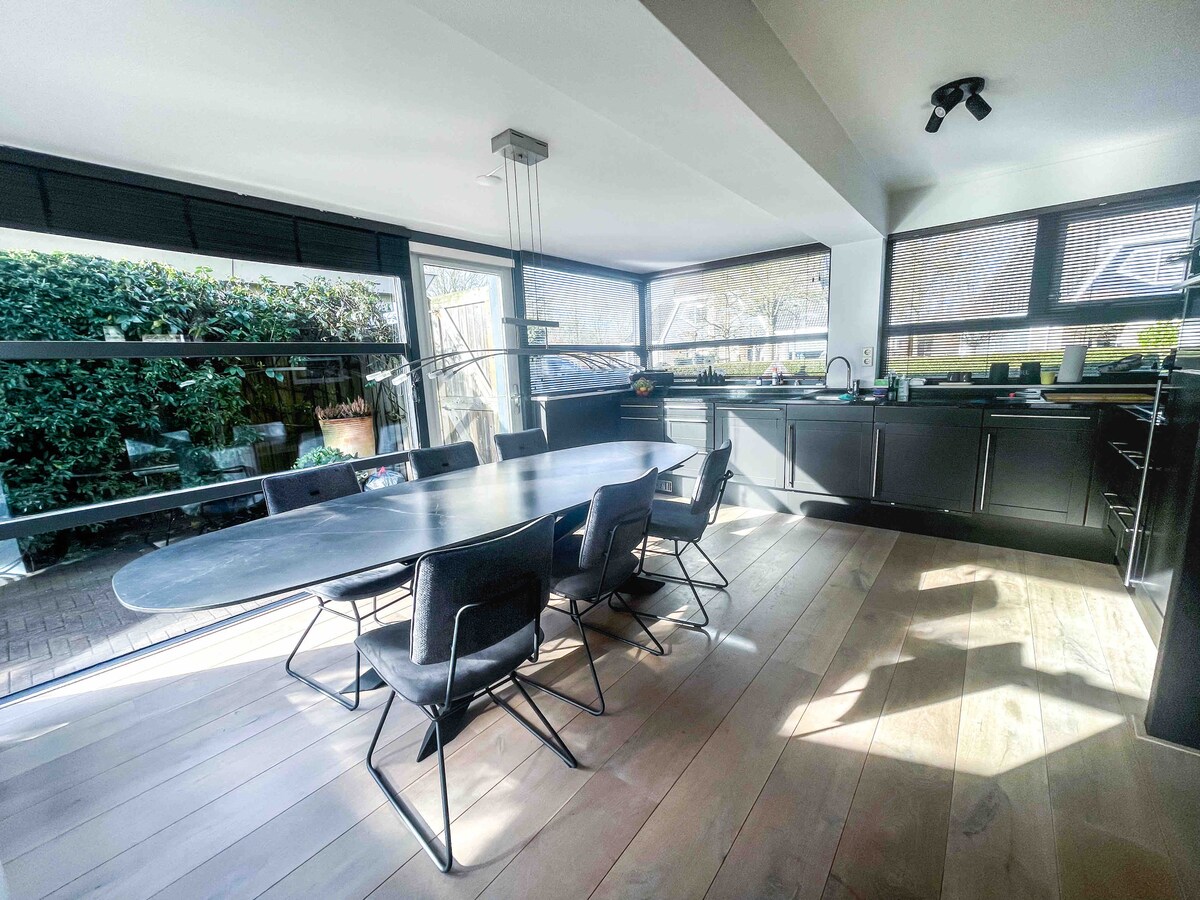 Nuestra elegante casa de huéspedes, nueva desde el verano de 2025. Disfruta de la paz, el espacio y una hermosa vista de los prados. Nuestra casa de huéspedes elegantemente amueblada tiene capacidad para 6 personas y cuenta con una cocina de lujo, baño y una acogedora sala de estar. 3 dormitorios en el segundo piso. Una acogedora sala de cine y televisión. Una bonita zona de estar al aire libre con vistas a los prados. El lugar ideal para relajarse por completo y disfrutar de la naturaleza frisona. ¡SALA DE CINE SEPARADA!