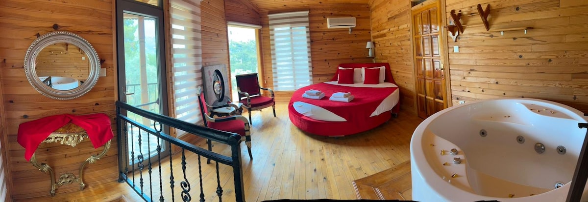 Casa de madera con jacuzzi y vistas al bosque de Akyaka