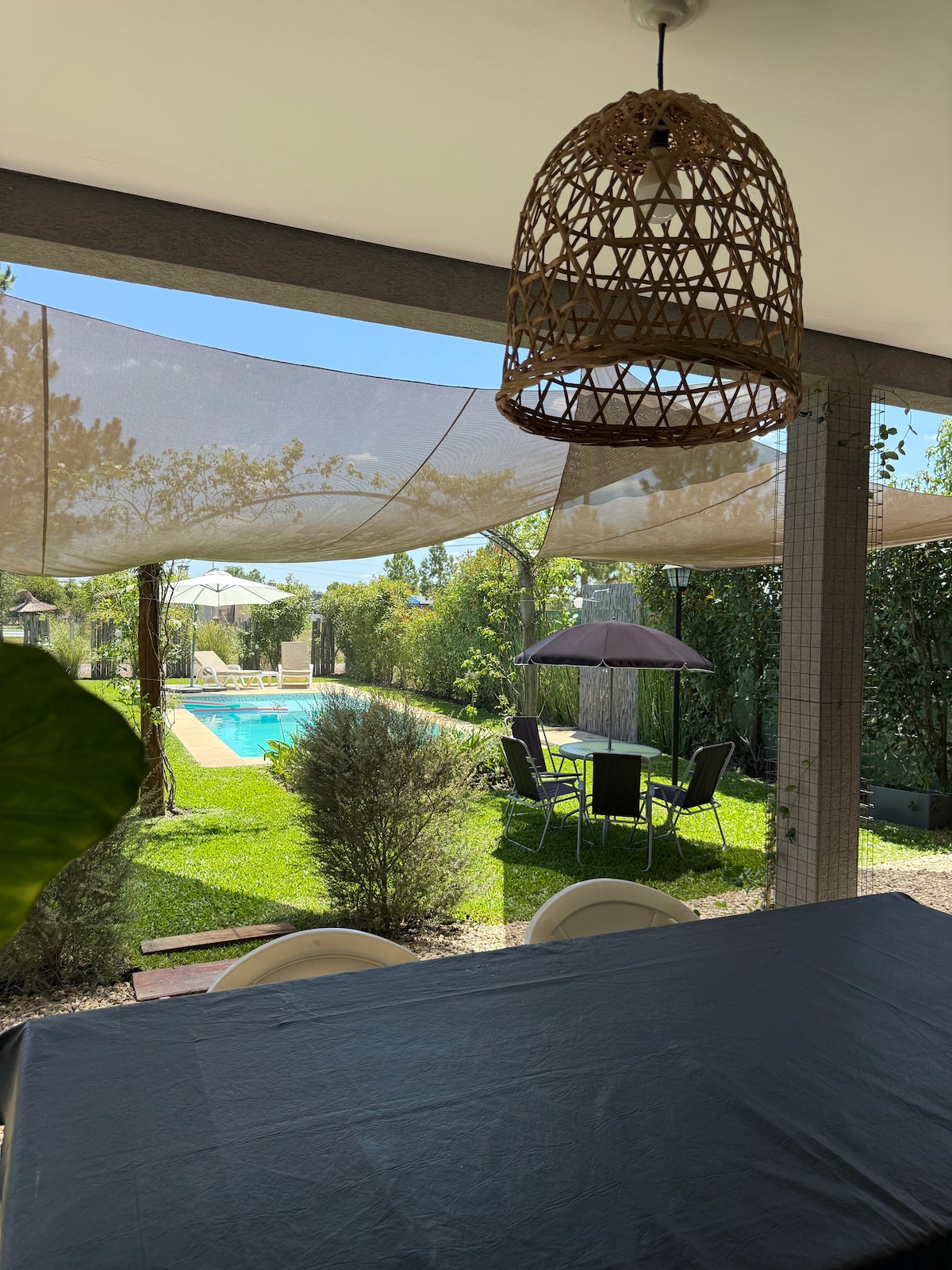 Súper y Relajante espacio en ėste tranquilo alojamiento, accesible, hermoso parque con todas las comodidades. la casa cuenta con amplio living comedor de 25 m2, con capacidad recomendable de 4 personas. Con cocina completa sin horno, baño con bidet. habitación principal con cama doble king 2X2 y otra hab con 2 camas individuales. Amplio patio verde de 30 m de prof. y espacio descubierto para el coche.. incluye sábanas y toallas flexible proceso de ingreso y egreso. consulte sus inquietudes!