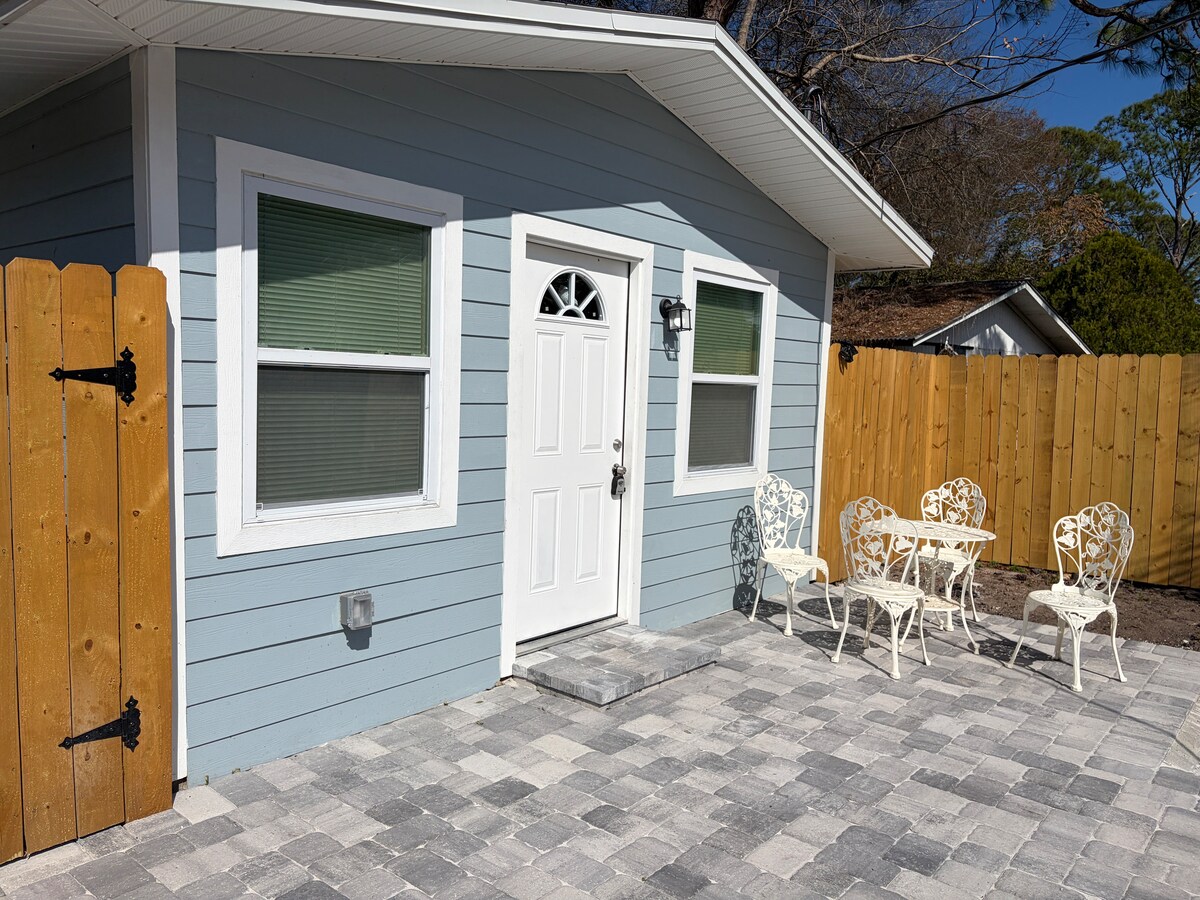 The Nest has undergone a major renovation/expansion with the addition of a full kitchen/dining and separate bedroom. It is an adorable, lavishly decorated lower level, 700 sq ft cottage on a large property located along the Indian River and three blocks from the heart of Cocoa Village. Laundry facility is next door to the Nest and shared with upstairs unit. It has a private courtyard. Parking onsite for one only normal-sized vehicle. No Cleaning Fee on 1-2 day stays. Max two guests.
