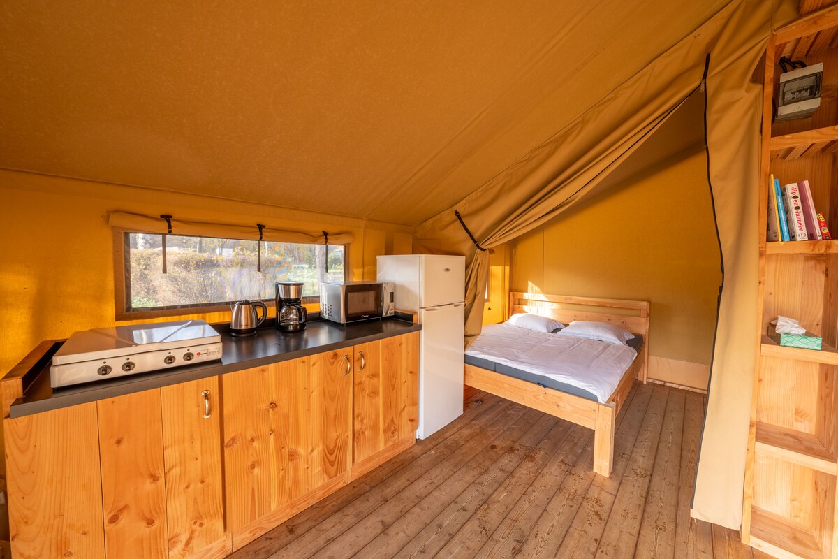 Cabaña para 2 en camping con sacos de dormir propios