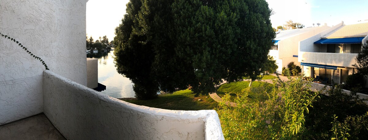 Loft frente al lago en South Tempe, en la exclusiva comunidad de Lakes. Entrada tranquila, segura y privada desde el complejo en Sandcastle en The Lakes. Acceso completo a Lakes Beach y al club de tenis. Cerca de ASU, Sky Harbor, Phoenix, ciudades del este del valle y Scottsdale. Los eventos de entretenimiento deportivo y los parques del área del valle están cerca. Restaurantes, tiendas y comestibles están convenientemente ubicados cerca. Este apartamento de dos dormitorios en el segundo piso está totalmente remodelado y actualizado con electrodomésticos nuevos, camas y ropa de cama de lujo.