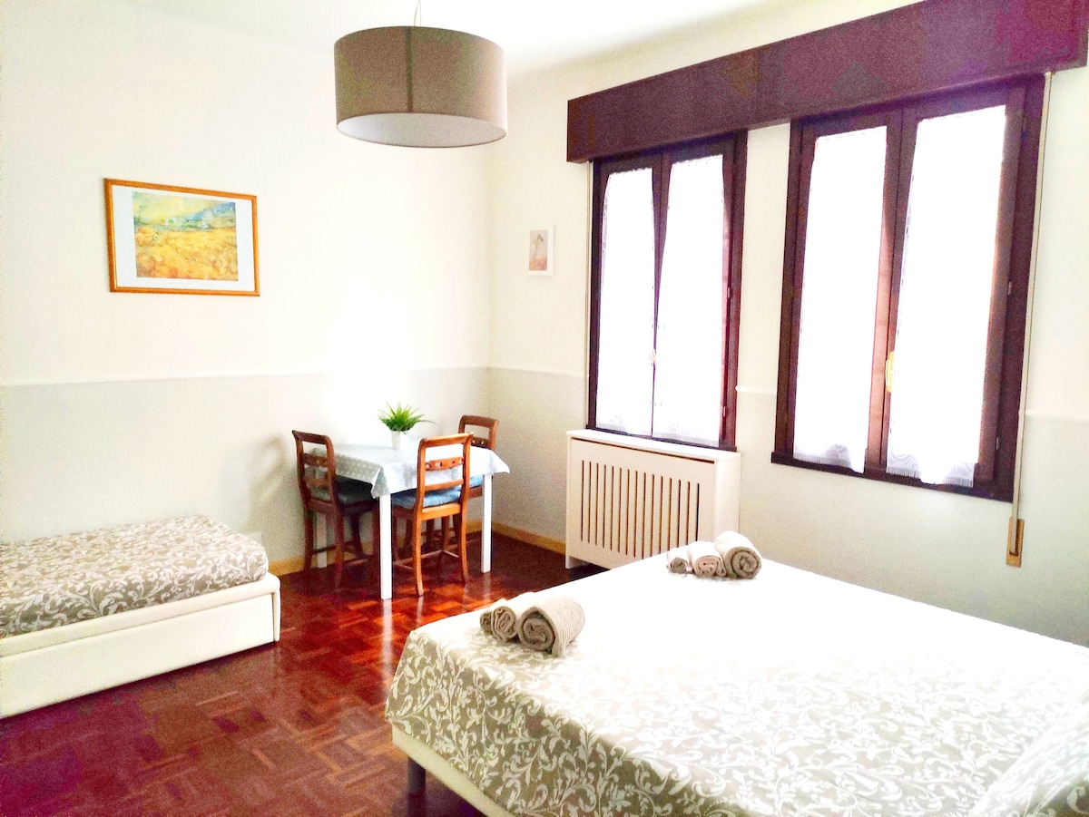 This is a fully-equipped mini-apartment. There is a kitchen/living-room area and a small balcony. The bedroom is spacious with en-suite bathroom, new double bed, large wardrobe, and sofa. transport to Venice and the Mestre train station is very close. My prices are based on persons per night because I hate to penalize single travellers so please book for the right number of people. We have self check-in but if you prefer to mee a person to show your document you have to pay an extra service.