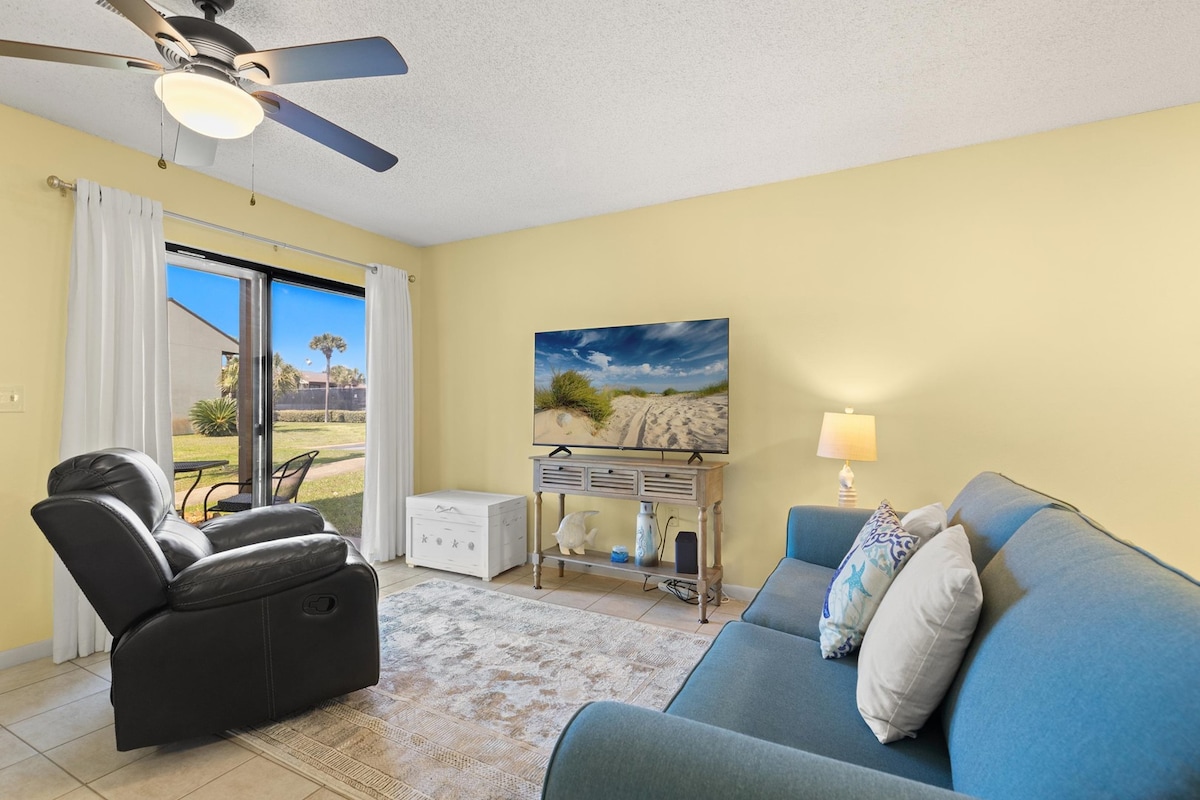 ¡Apartamento frente a la playa en la hermosa playa de México! 4 camas (tamaño king, queen, 2 completos), 2 baños completos que incluyen una suite principal. Cocina totalmente equipada, Direct TV y un balcón privado con impresionantes vistas al mar. Estacionamiento techado gratuito debajo de la unidad; fácil acceso a través de ascensor o escaleras. Disfruta de paseos al amanecer, noches de cine en familia y del sonido de las olas desde tu hogar lejos de casa. ¡Perfecto para familias, parejas o una escapada relajante! ¡Reserva tu estancia y experimenta el encanto relajado de la Vieja Florida!