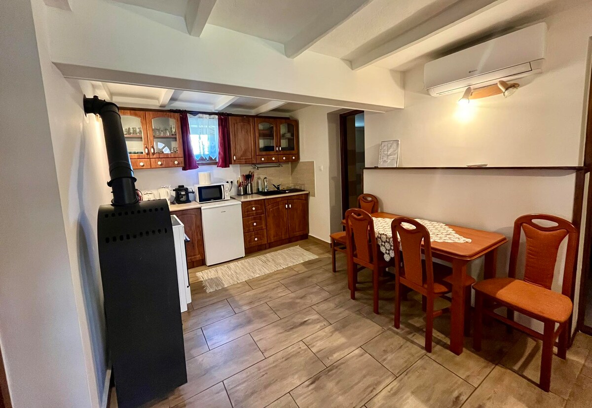 Angyal Apartman se encuentra a 200 m del famoso spa Gyula en la calle Tiborc. 2 apartamentos uno encima del otro. Se pueden reservar en 2 anuncios separados. La inferior es 4 y la parte superior es 6 . Baños con cabina de ducha, inodoros, cocinas equipadas. Aire acondicionado, televisores, wifi gratuito. 2 autos pueden estacionarse de forma gratuita en el garaje, o 1 coche directamente frente a los apartamentos, de forma gratuita. Hay un asiento cubierto al aire libre en el jardín, barbacoa y repostería de tocino disponible. También pueden pagar con tarjeta de débito y tarjeta SZÉP.