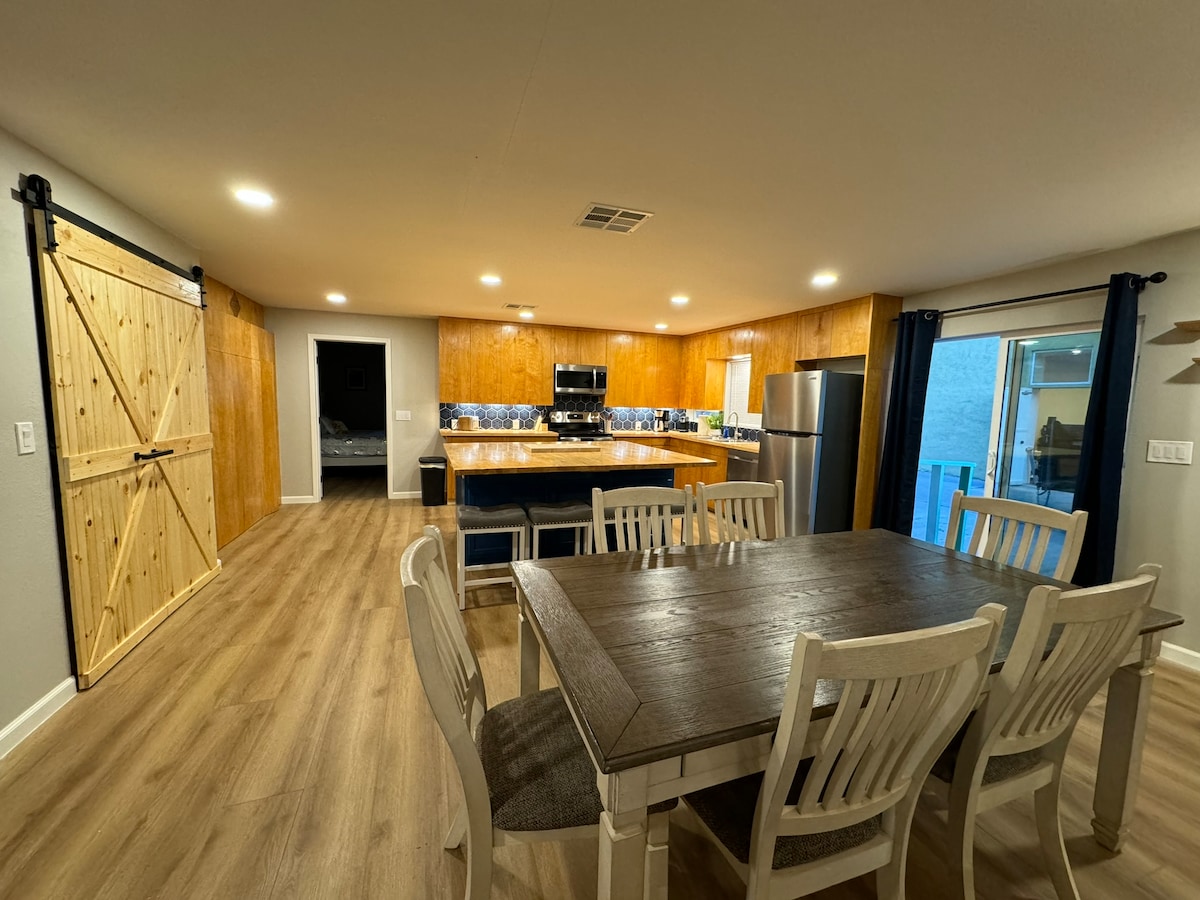 Ven a disfrutar de este oasis tranquilo y pacífico cerca de las montañas Pinal y el histórico Downtown Globe. Hay mucho estacionamiento para varios vehículos y mucho espacio para camiones/remolques. Amplio espacio al aire libre con árboles de sombra, totalmente vallado en el patio y un fogón. El dormitorio principal tiene una cama tamaño king. El segundo dormitorio está equipado con una cama queen size. La cama adicional es un futón de tamaño completo y se encuentra en una habitación independiente que incluye lavadora y secadora.