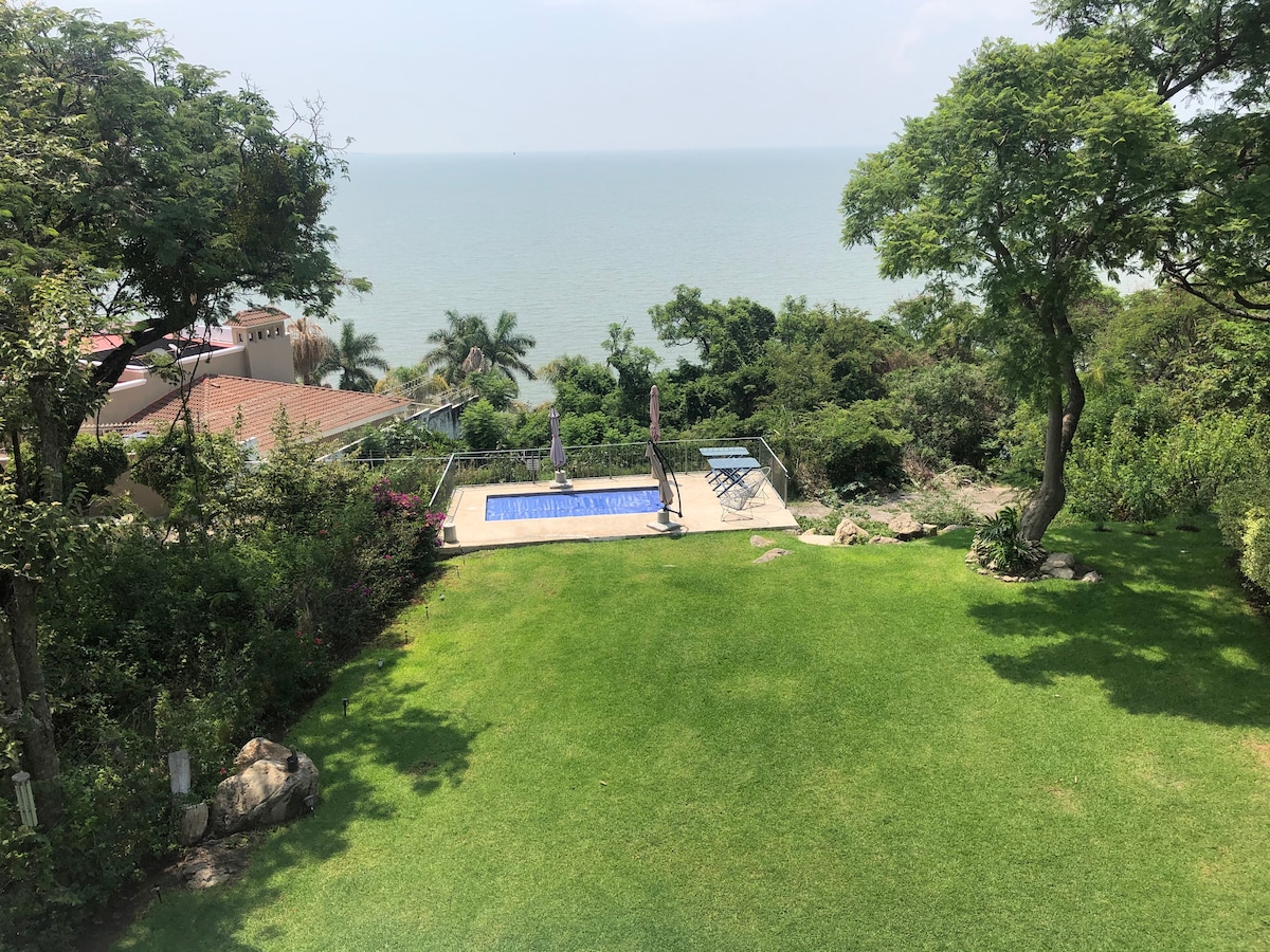 Casa habitación con 7 años de construcciòn, con 3 recamaras 3.5 baños, sala comedor, cocina, excelente wifi, terraza, jardìn, cochera para 3 autos, alberca con agua templada, en un fraccionamiento seguro y tranquilo muy pocos vecinos, con vista a la laguna espectacular. Se encuentra a 12min. del pueblo de Chapala, a 10 min. del pueblo de Mezcala, a 20 min. del pueblo de Ajijic y a 35 min. del aeropuerto intl. de Guadalajara. Un clima excelente todo el año.