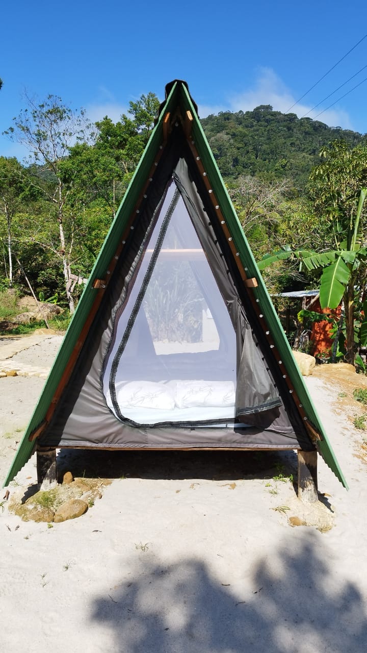 Apenas a 1h e 45 de São Paulo, você encontrará um refúgio único no condomínio Abras do Una, aninhado na deslumbrante Mata Atlântica. Nossas tendas de luxo oferecem a junção perfeita entre natureza selvagem, segurança e o conforto que você merece. Nossas tendas rústicas oferecem a autenticidade do acampamento sem nenhum perrengue. Com ar condicionado, frigobar, tv e camas queen size, proporcionamos o conforto que você merece. Tudo isso com segurança.