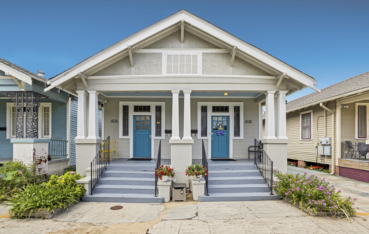 Esta casa no permite reuniones, fiestas, sobornos ni noches de chicas/chicos, y tiene un límite estricto de huéspedes. Bienvenido a nuestro doble de 2 dormitorios y 1 baño de estilo Arts and Crafts en una ubicación perfecta y segura de Mid-City. ¡A solo unos pasos del tranvía (a 20 minutos en coche del Barrio Francés), el parque de la ciudad, el recinto ferial, tiendas de comestibles, cafeterías, restaurantes y vida nocturna! Esta casa de 110 años ha sido recientemente renovada con detalles de lujo, manteniendo su encanto histórico. ¡Ven a disfrutar!