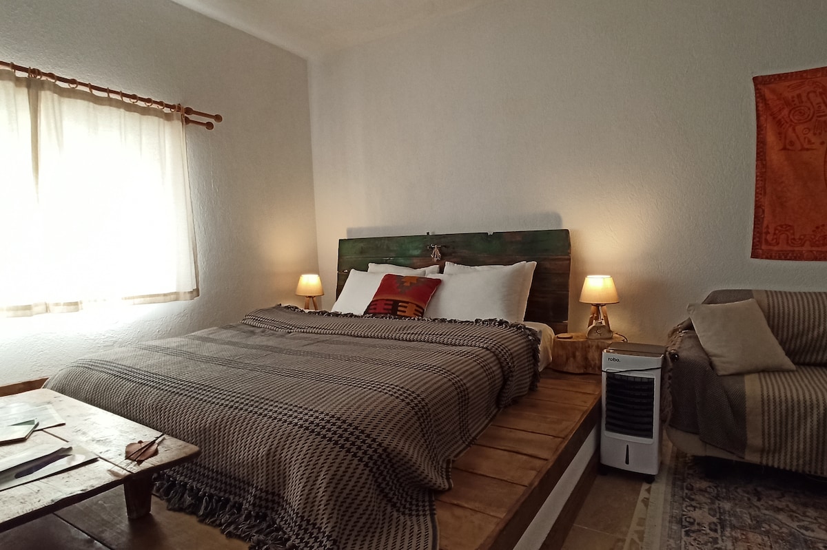 Hola, en primer lugar, estas son casas de adobe, todas hechas de arcilla con los métodos tradicionales de albañilería de piedra del antiguo Mediterráneo. Llevamos una vida autosostenible «tanto como podemos», por lo que nuestra electricidad proviene de paneles de energía solar que son suficientes para hacer funcionar una nevera pequeña, ordenadores portátiles, luces y cargadores de teléfonos. Calentador de agua de leña en el baño. Queríamos estar lejos de la multitud, por lo que no es tan fácil llegar hasta nosotros. Así que es mejor si tienes un 4x4 o puedes caminar por un camino cuesta arriba durante 15 minutos.