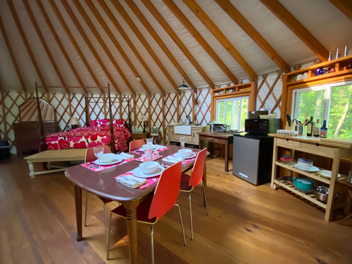 Disfruta de una escapada única a la naturaleza y relájate en un entorno boscoso pacífico de 10,3 acres en nuestra yurta de 30 pies de diámetro, con capacidad para 4 personas en North Guilford, CT. Esta elevada morada espectacular ofrece soledad y una gran terraza con cómodas sillas y vistas al bosque. A la sombra y fresco en verano, con aire acondicionado y ventiladores disponibles. Esta yurta ofrece un maravilloso respiro del mundo agitado. Perfecto para los amantes de la naturaleza con un arroyo cercano y kilómetros de senderos para senderismo y ciclismo de montaña.