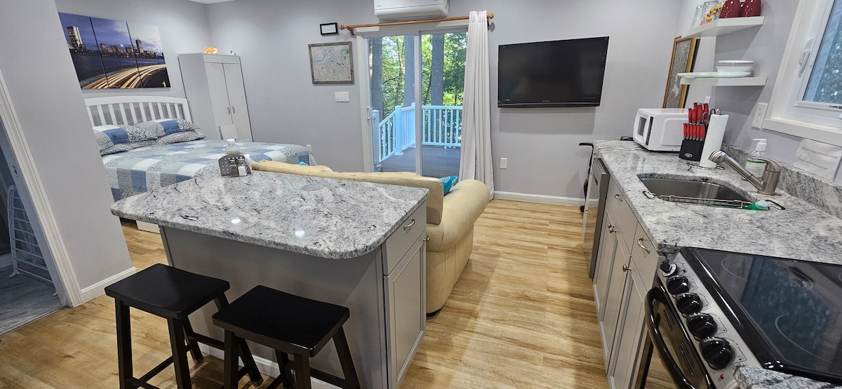 Alquiler totalmente amueblado y equipado en MA. Esta casa de huéspedes tipo estudio privado, independiente y completamente renovado es ideal, con un entorno tranquilo y su propia terraza privada al aire libre con vistas al estanque. Ubicado en la bonita ciudad de Westford, Massachusetts. A solo 35 a 40 minutos al noroeste de Boston y a 10 minutos de la frontera de NH. A cinco minutos de la ruta 3 de EE. UU.