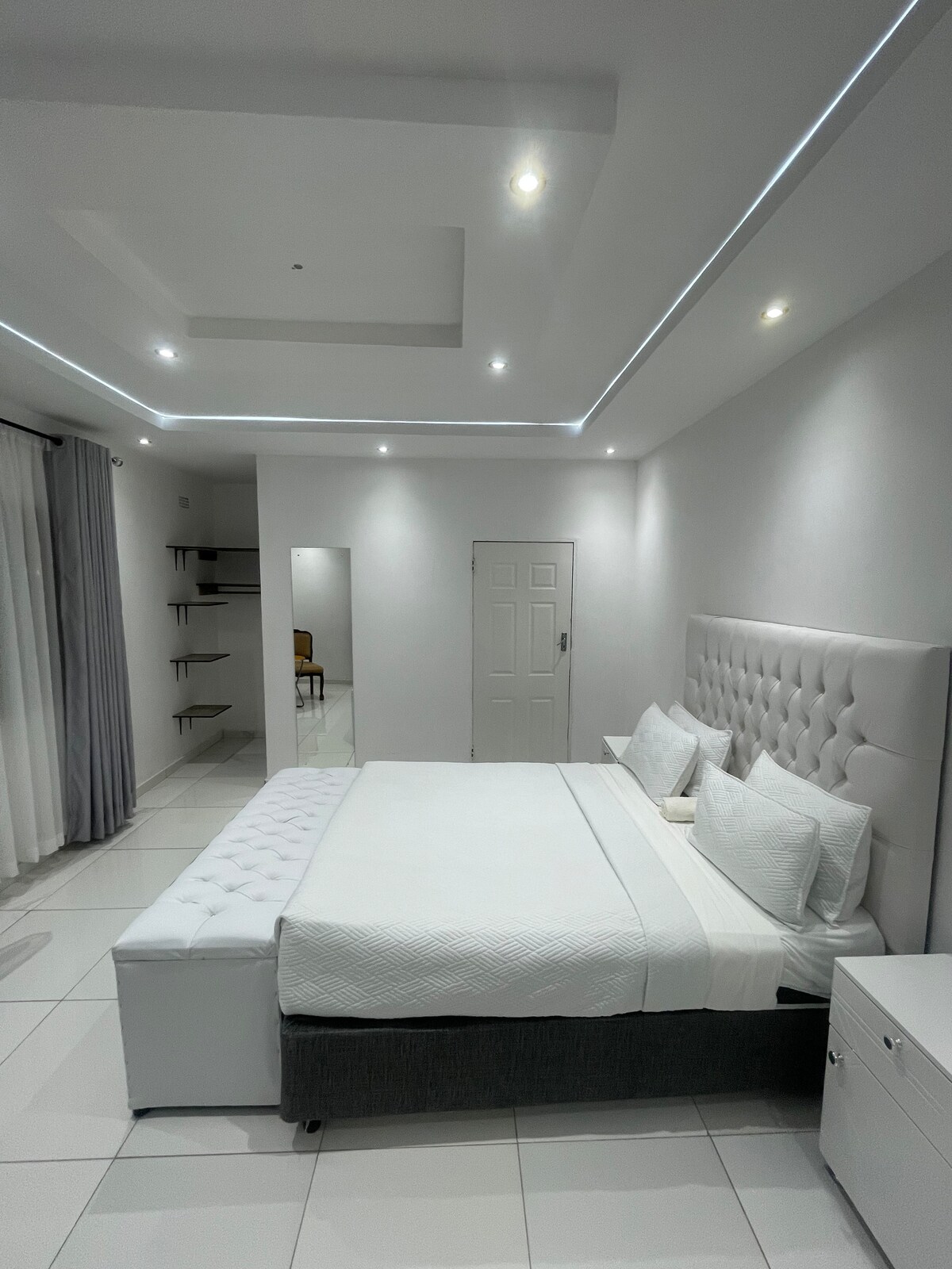 Te damos la bienvenida a nuestro amplio Airbnb de 7 dormitorios ubicado en el corazón de Gweru, Zimbabue. Desde el momento en que pongas un pie en este espacioso refugio, estarás envuelto en la comodidad, el estilo y la calidez de la hospitalidad de Zimbabue. Ubicado en un vecindario sereno, pero a poca distancia en coche del bullicioso centro de la ciudad, nuestro Airbnb ofrece la mezcla perfecta de tranquilidad y conveniencia. Te damos la bienvenida a Banville Place, el lugar ideal.
