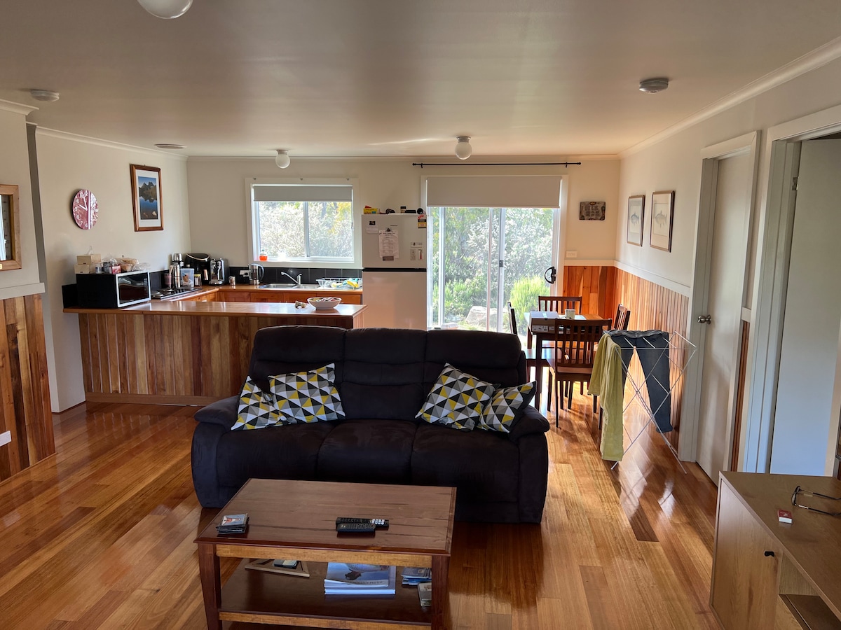 Esta encantadora casa de campo independiente de estilo montañoso está ubicada en el lado del monte Roland, Tasmania. Situado en una tranquila carretera sin asfaltar, con impresionantes vistas del valle de Dasher por un lado y el monte Roland por el otro. A solo 10 minutos de Sheffield (todos los servicios/restaurantes), a 45 minutos de Cradle Mountain, a 1 hora de Launceston y a 40 minutos del Spirit of Tasmania. Relájate en la terraza privada, acaricia a nuestras cabras o explora las rutas de senderismo, cascadas, bodegas, rutas de degustación, etc.