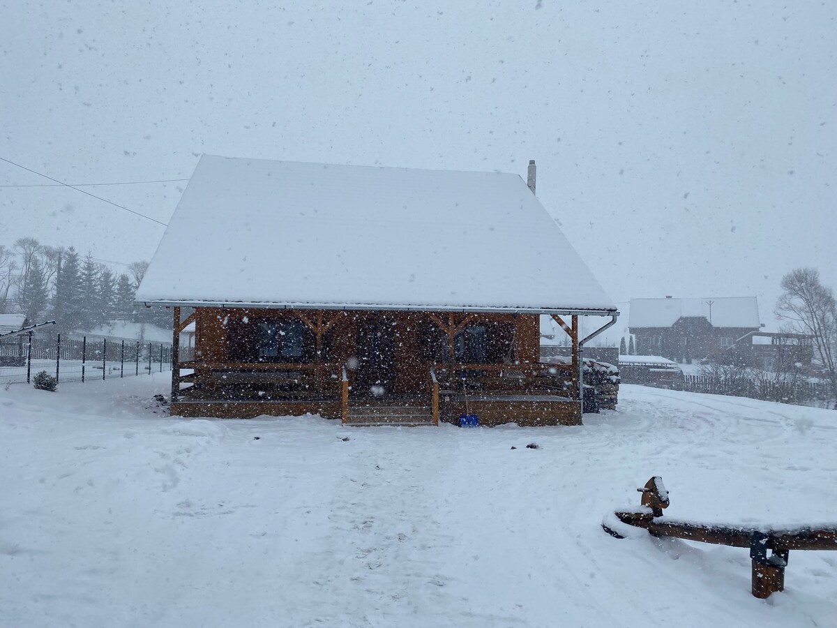 Cozy cabin for those who'd like to spend a long weekend in Harghita Bai for skiing or hiking in the mountains. Ideal for a family or groups of 4-6 people. In wintertime the house is heated with woods from a central fireplace which heats the radiators too.