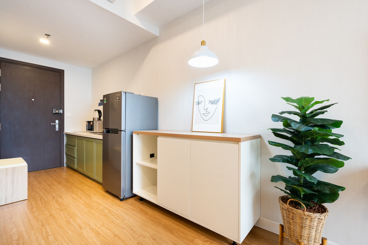 Un apartamento tipo estudio bellamente diseñado con todo lo que necesitas, situado en el centro, pero lo suficientemente escondido para una noche de sueño tranquilo lejos del fuerte ruido de la ciudad. Ideal para viajeros que quieran explorar Saigón y buscan comodidad de calidad y una experiencia más local. - Bonita piscina. - Wifi rápido gratuito, TV por cable. - Servicios gratuitos para tu estancia: lavadora, secadora, aire acondicionado, nevera, agua caliente. - Cocina con suficientes utensilios para cocinar. Nota: No proporcionamos/admitimos facturas con IVA.
