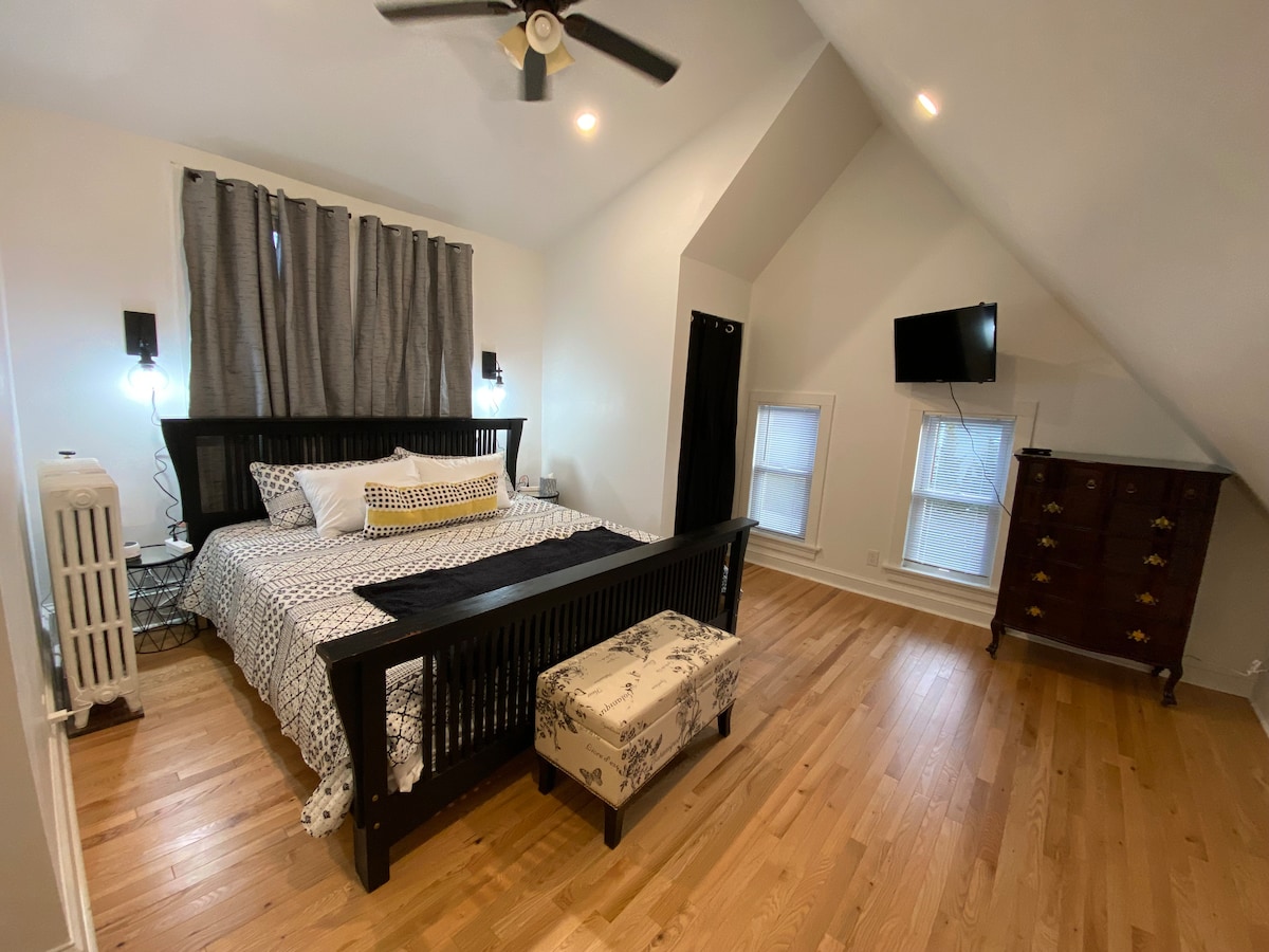 ¡Te damos la bienvenida a nuestro bungalow artesanal de 1924! Combinando el estilo Prairie House con las innovaciones del artesano de Chicago, nuestro bungalow de ladrillo está esperando tu estancia. Disfrutarás de la suite superior, con entrada privada, dos dormitorios, cocina y baño completo. Los suelos de porcelana recién reformados inspiran lujo a cada paso, junto con el nuevo «Article» seccional, TV de 50 pulgadas con streaming, ropa de cama y toallas 100 % algodón, una cocina llena de ventajas y electrodomésticos, y una exuberante vegetación para mantener el aire limpio.