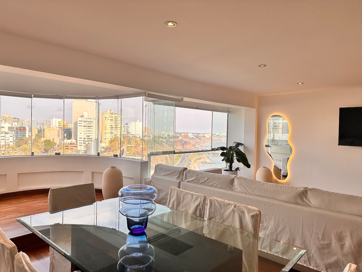 Hermoso y espacioso Apartamento con vistas al Océano Pacifico , cuenta con 4 habitaciones , 3 baños y equipado para 8 personas. Está ubicado entre Larcomar y el Hotel Marriot , significa acceso inmediato a una variedad de tiendas, restaurantes, cines y entretenimiento. Es un lugar perfecto para quienes buscan comodidad y relajo. La ubicación central permite fácil acceso a otros puntos de interés en Lima, como parques, museos y el malecón, ideal para paseos y actividades al aire libre.