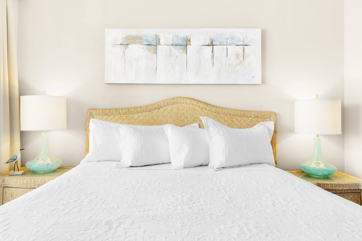 Este espacioso apartamento Majestic Sun tiene impresionantes vistas despejadas al golfo, muebles actualizados y capacidad para seis personas. Decorada en relajantes colores de diseño con un toque costero, la unidad tiene un dormitorio con una cómoda cama tamaño king, TV de pantalla plana y baño privado con ducha/bañera; dos literas en una alcoba de pasillo, un segundo baño con ducha y cocina de tamaño completo de concepto abierto con todos los electrodomésticos nuevos de acero inoxidable de tamaño completo, comedor y sala de estar con un sofá cama.
