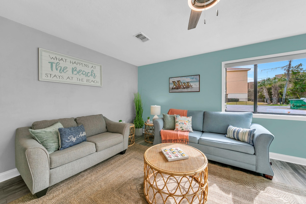 🛏 Cama king de lujo: colchón MLILY Harmony 3.0 para la máxima comodidad 🍳 Cocina nueva: totalmente renovada en diciembre de 2025 🌊 Playa en minutos: a solo 3 minutos a pie (0,3 millas) de la arena 🧺 Lavadora y secadora en la unidad: lleva poco equipaje y refresca tu ropa en cualquier momento 🛋 Sofá cama tamaño queen: duermen cómodamente hasta 4 personas (cama tamaño king + sofá cama) 🏖 2 sillas de playa incluidas: listas para tus días bajo el sol ⏱ Check-in temprano: a menudo disponible 1–2 horas antes del check-in estándar (cuando sea posible)