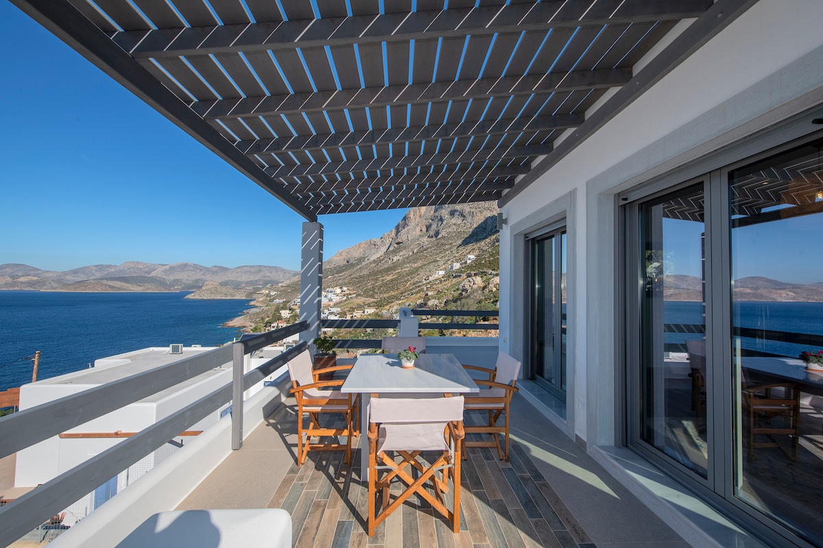 Una casa nueva, moderna y única con una magnífica vista del Egeo. En una de las zonas más pintorescas y bonitas de Kalymnos, famosa por sus numerosas rutas de escalada. A solo 25 minutos del puerto de Kalymnos, a 20 minutos del aeropuerto y a 10 minutos de la zona llamada Masouri, que es la principal zona turística de la isla. Disfruta del mar que está a poca distancia de la casa. Con un pequeño camino cuesta abajo que parte de la casa, puedes estar en la playa en un minuto.