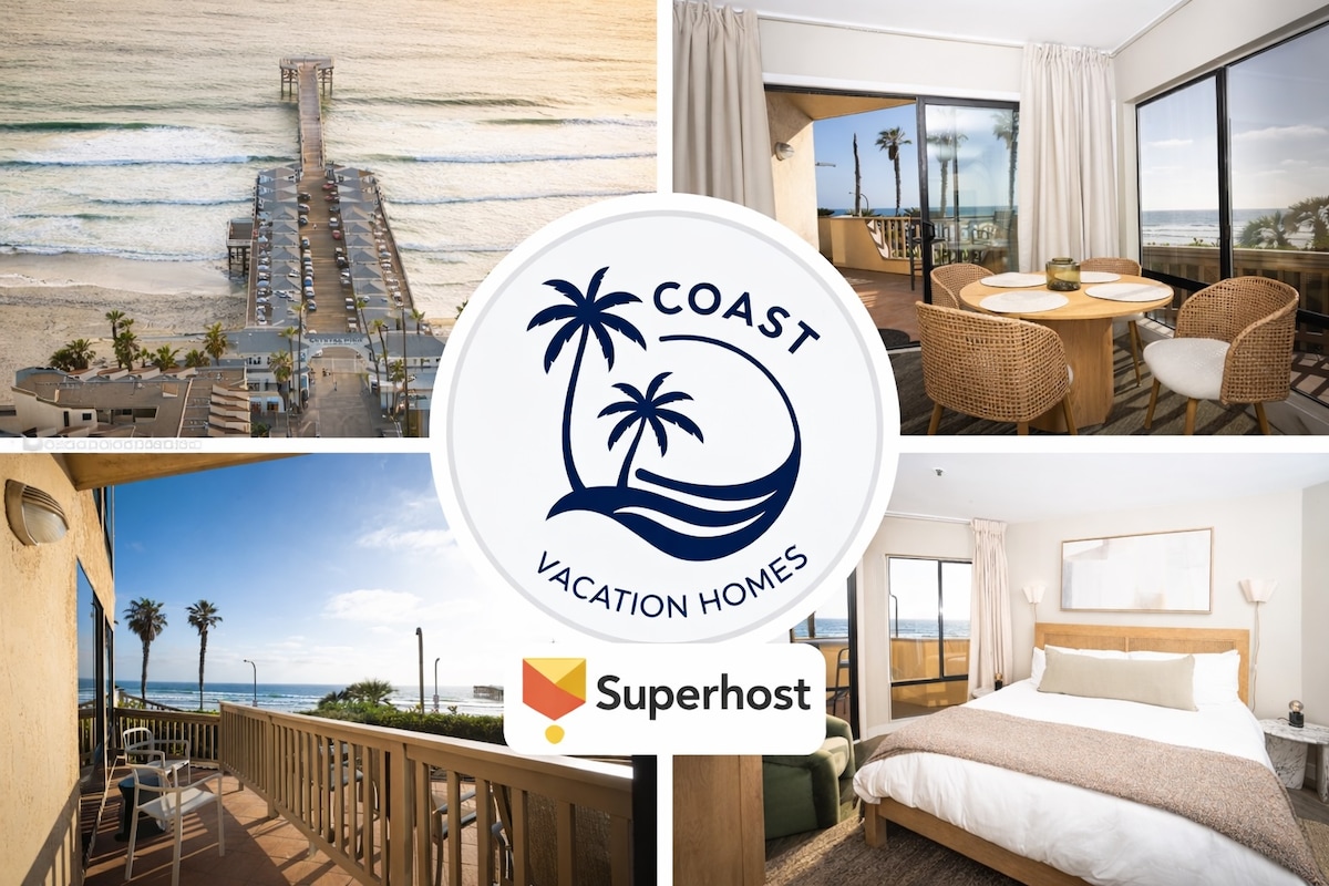 Relájate en esta espaciosa villa en el 2do piso, con impresionantes vistas al mar y una silla de masajes de cuerpo completo en la suite principal, con patio privado. A solo pasos de la playa Marine. Disfruta techos altos, una acogedora chimenea, cocina totalmente equipada y mucha luz natural, Wi-Fi, televisión, cuarto de lavado/oficina, estacionamiento para un vehículo, y articulos de playa. Para semana, fin de semana o una estancia más larga, esta villa es tu santuario perfecto en La Jolla.