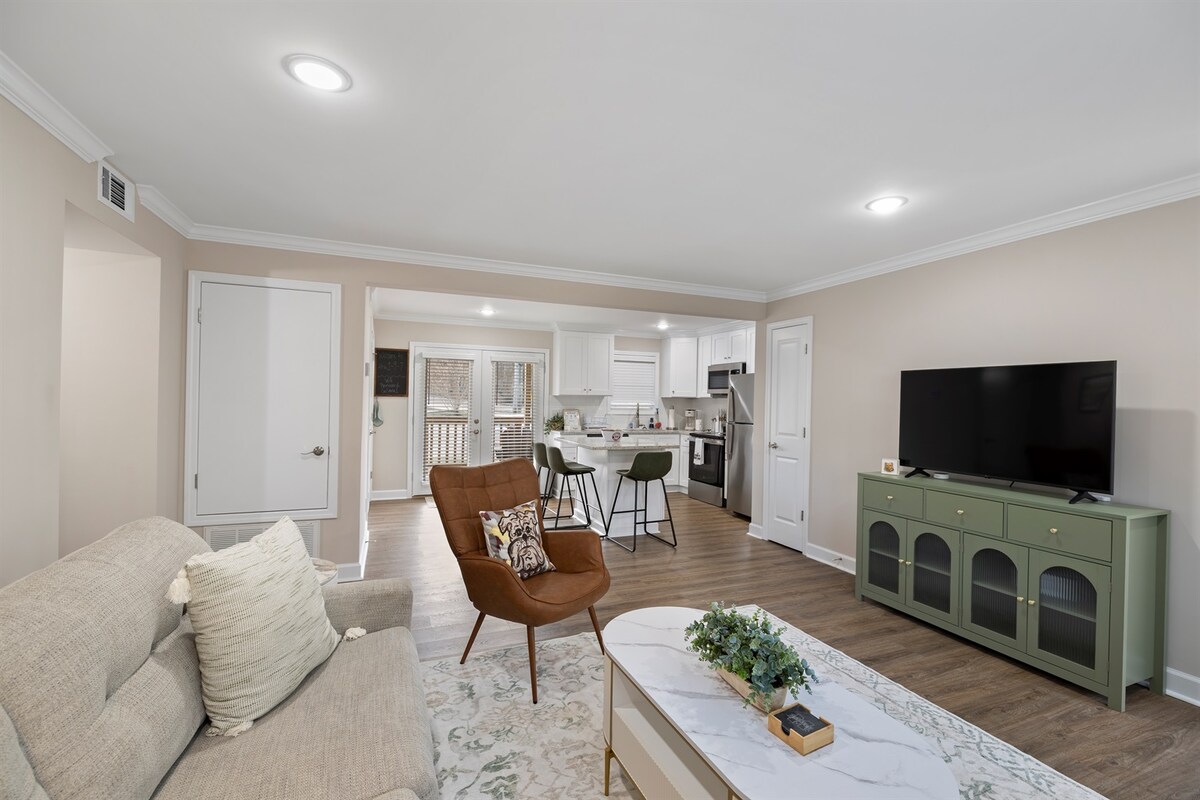 ¡Apartamento renovado de 2 dormitorios y 2,5 baños! Perfecto para juegos de pelota, ¡ahórrate las molestias del aparcamiento y camina 15 minutos hasta Dudy Noble, Davis Wade o el Hump! ¡O puedes conducir en 3 minutos! Cada dormitorio tiene una cama tamaño queen y baño adjunto. Hay un sofá cama tamaño queen de Ikea en la sala de estar para huéspedes adicionales. ¡Lo hemos diseñado y decorado como nuestra propia casa y sabemos que aquí también te sentirás como en casa! (No se permiten mascotas ni fumar). Los fines de semana de partido en casa requieren una estancia de viernes y sábado.