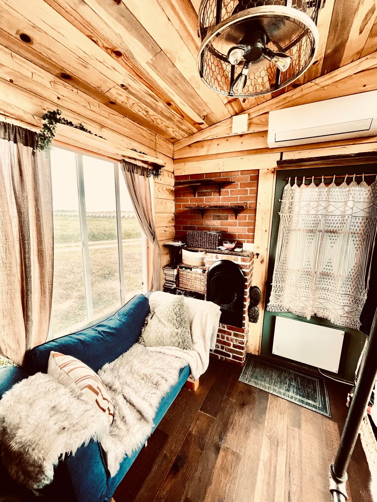 Descubre la belleza y la tranquilidad de Living (Teeny!) Tiny, rodeada de suaves colinas verdes. Disfruta de una taza de café mientras contemplas la vegetación desde la sala de estar o la terraza. Relájate en una hamaca, medita, escribe, haz yoga, cocina en la cocina al aire libre, explora la tierra o relájate junto a la hoguera. Disfruta de una vista ideal de la hermosa puesta de sol. Maravíllate con las deslumbrantes estrellas a través del tragaluz mientras te duermes. Deja que este oasis místico te recuerde la belleza de la sencillez y la naturaleza.