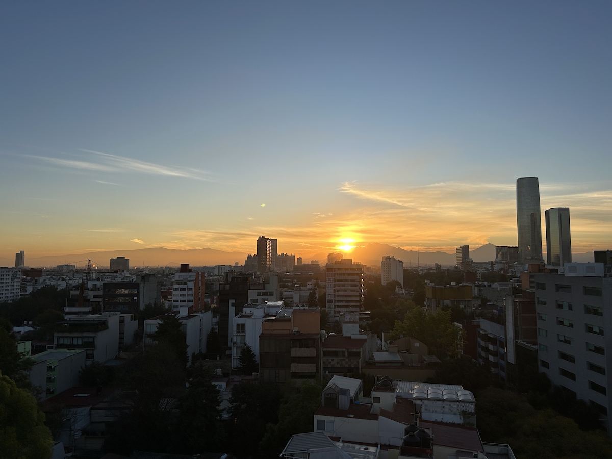 Luxurious loft with amazing view in Insurgentes sur, of one of the most popular avenues in Mexico City. It´s walking distance to public transportation, stores, and restaurants. Fully equipped kitchen, washing machine, roofgarden. Perfect for businessmen and couples. The best place to stay in CDMX Departamento de lujo con vista panorámica en insurgentes sur. Muy cerca del transporte público, tiendas, corporativos y restaurantes. Cocina, lavadora y roofgarden.