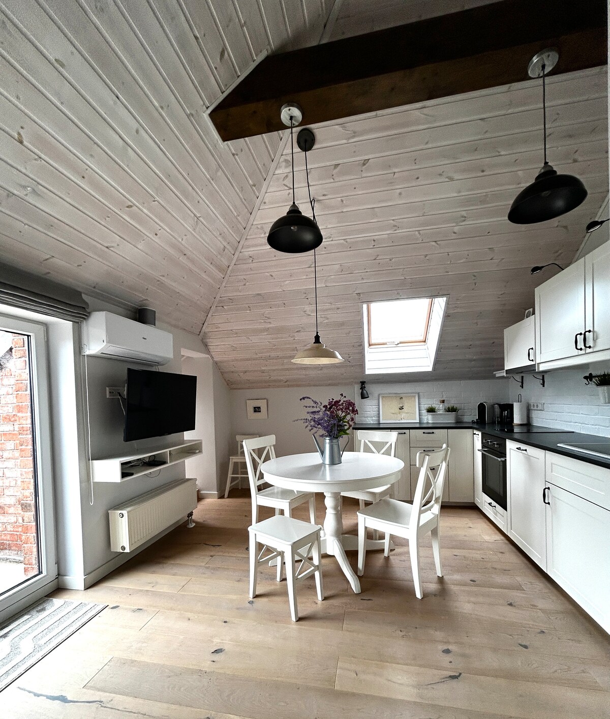Estudio recién amueblado en el centro de Druskininkai, ideal para viajes de trabajo, parejas o familias pequeñas. El luminoso salón se transforma en un acogedor espacio para dormir con un área de trabajo dedicada. Disfruta de dos balcones amueblados, aire acondicionado, wifi rápido y una cocina totalmente equipada con lavavajillas. A poca distancia del parque acuático (900 m), el estanque Vijūnėlės (800 m), el estanque Druskonis (600 m) y el balneario (650 m). Tranquilo, elegante y perfectamente ubicado para descansar e inspirarse.