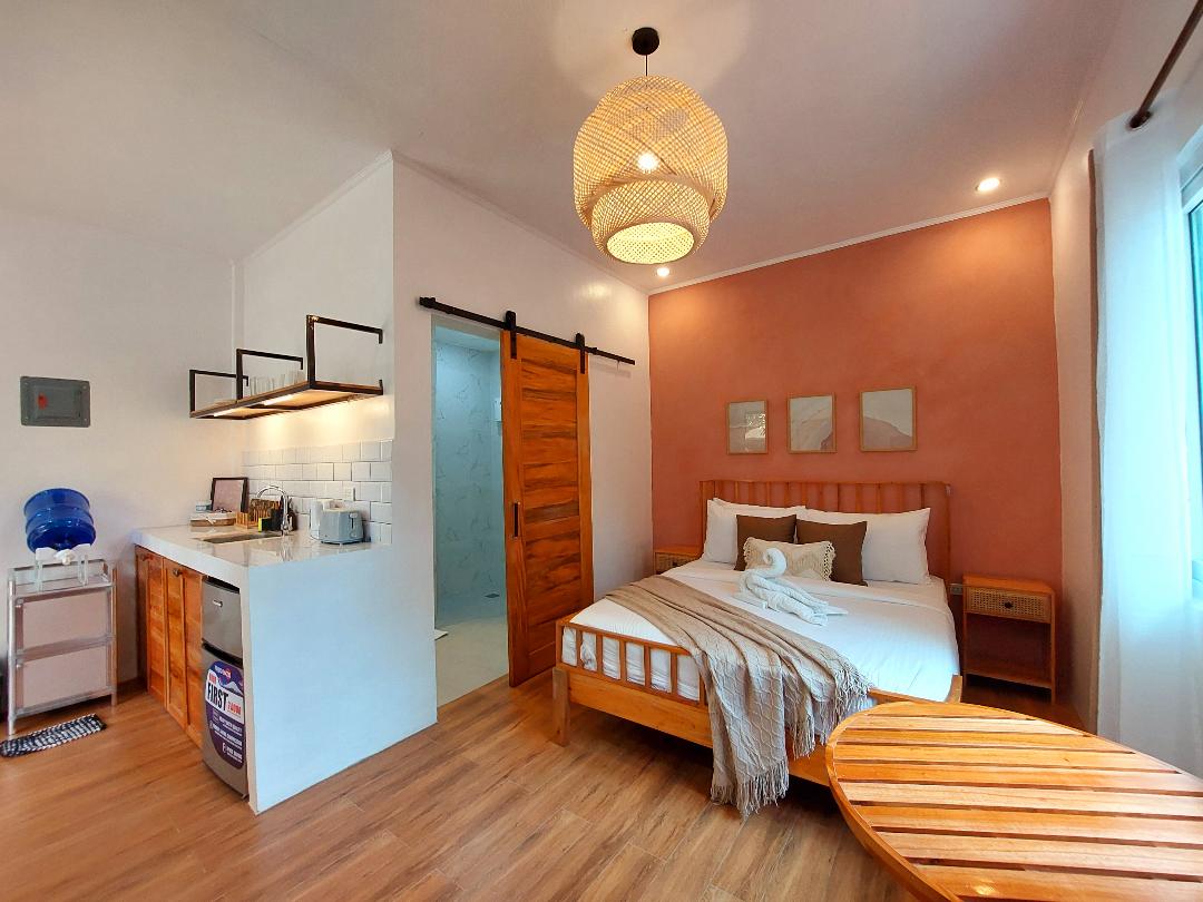 Ubicado entre la ciudad turística de Moalboal y Badian, nuestro estudio tiene una cama tamaño queen, baño propio con ducha fría y caliente, televisión y wifi disponible en la habitación. Cuenta con una cocina pequeña con mininevera, hervidor, tostadora y fregadero. Tiene una terraza compartida, una gran zona de césped delante y entre árboles de mango. En la propiedad se puede alquilar una escúter. 110 cc - 350 php 125 cc - 450 Servimos desayuno (no incluido en el precio de la habitación).
