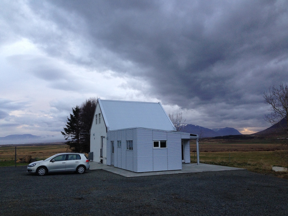 Apartment A offers peace, privacy, and breathtaking views on our serene Icelandic farm. Unwind in the shared geothermal hot tub and cold plunge, surrounded by pure nature and crisp mountain air. On clear winter nights, you might see the Northern Lights above and enjoy crystal-clear water flowing straight from our mountain, Staðarhnjúkur. 10 minutes drive to Akureyri and a lot of activities nearby. You are looking at apartment A on the left side.