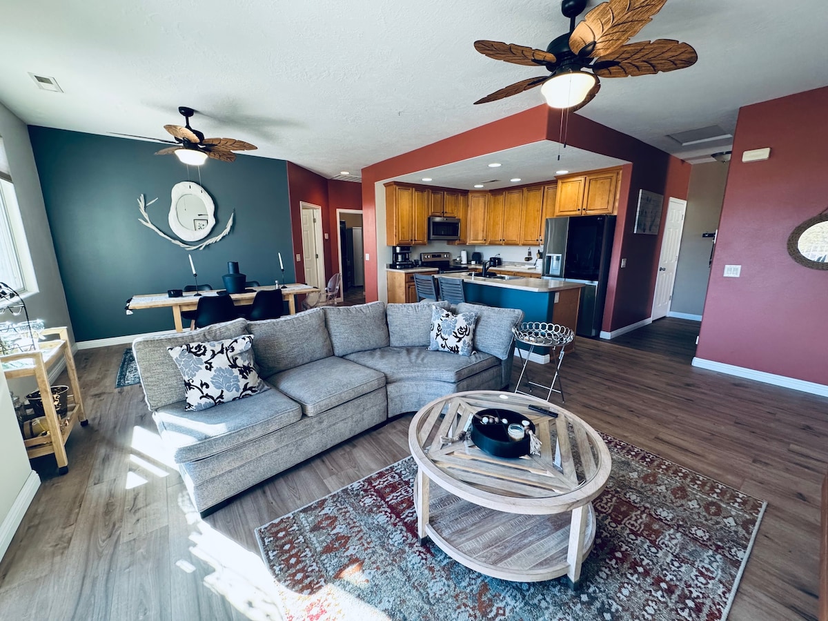 Primera planta, unidad orientada a la montaña Camas tamaño king y queen. Aire acondicionado y ventiladores de techo. Lavadora/secadora de tamaño completo gratis en la unidad. Capacidad para 4 personas cómodamente. Televisores en cada dormitorio y de 75 pulgadas en la sala de estar. Cocina totalmente equipada. Wifi y cable gratuitos Piscina compartida/bañera de hidromasaje/centro de fitness/barbacoas Parrilla eléctrica Forman en el patio A 2 minutos del campo de golf Wolf Creek Una plaza de aparcamiento cubierta reservada + plazas para invitados. Aparcamiento gratuito para autocaravanas/barcos en el complejo. Se admiten perros por una tarifa no reembolsable de 50 USD (no se admiten gatos). ¡Gracias! **ESTA ES UNA UNIDAD PARA NO FUMADORES**