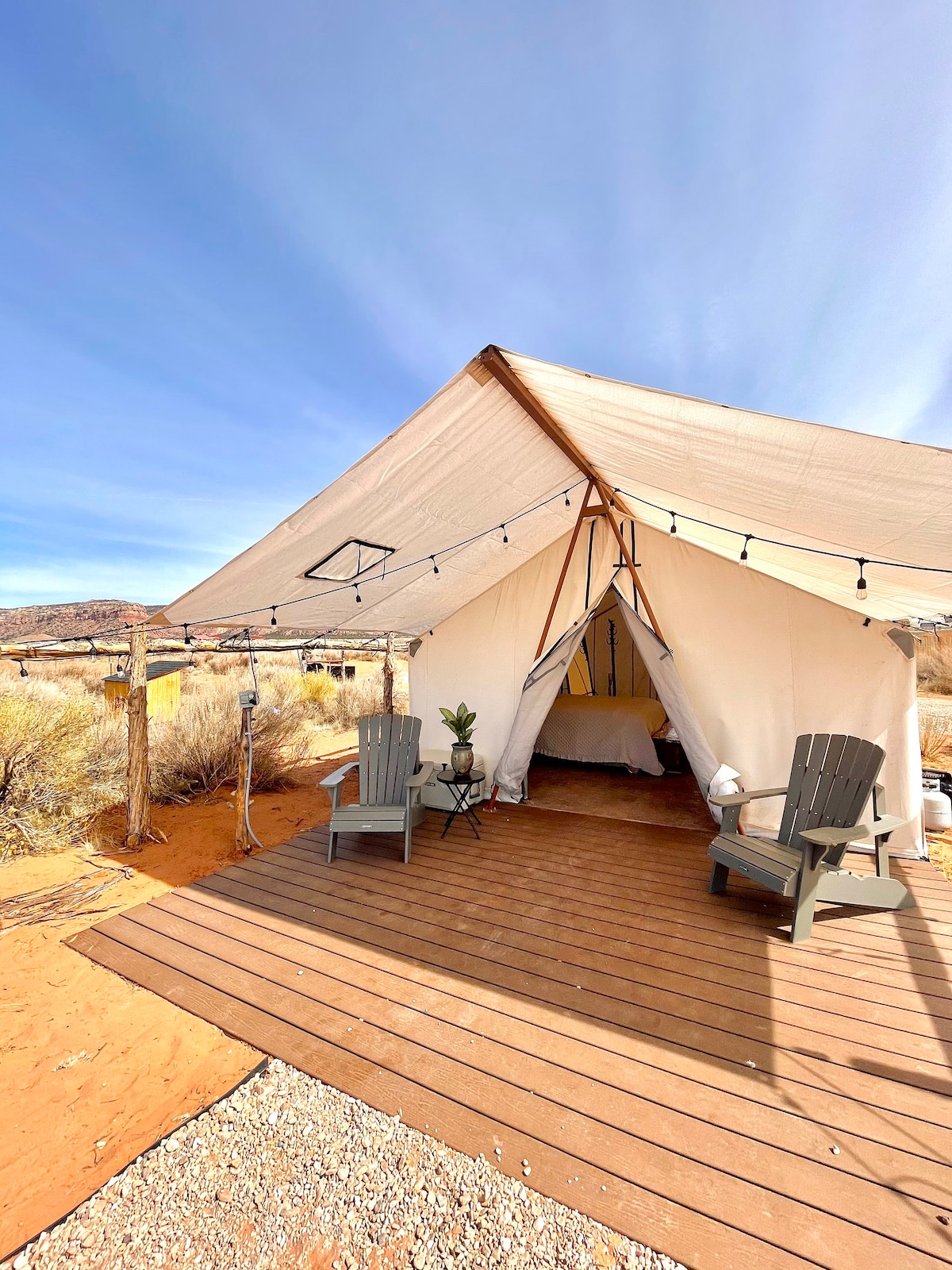 ¡Como se ve en Architectural Digest! Nuestra lujosa tienda de campaña de 10x12 pies es una base de operaciones perfecta cerca de los parques nacionales Zion, Bryce Canyon y Grand Canyon. Nuestra tienda de campaña ofrece una cama climatizada tamaño queen, una unidad eléctrica de aire acondicionado/calentador, wifi y una impresionante ducha privada al aire libre e inodoro interior. A 50 minutos de Zion y a 40 minutos de Kanab. También hay 2 parrillas de gas totalmente surtidas y una fogata de propano construida a medida en el lugar, lo que nos convierte en la estancia perfecta para una aventura en el oeste. ¡También ofrecemos entrega de comestibles en el lugar!