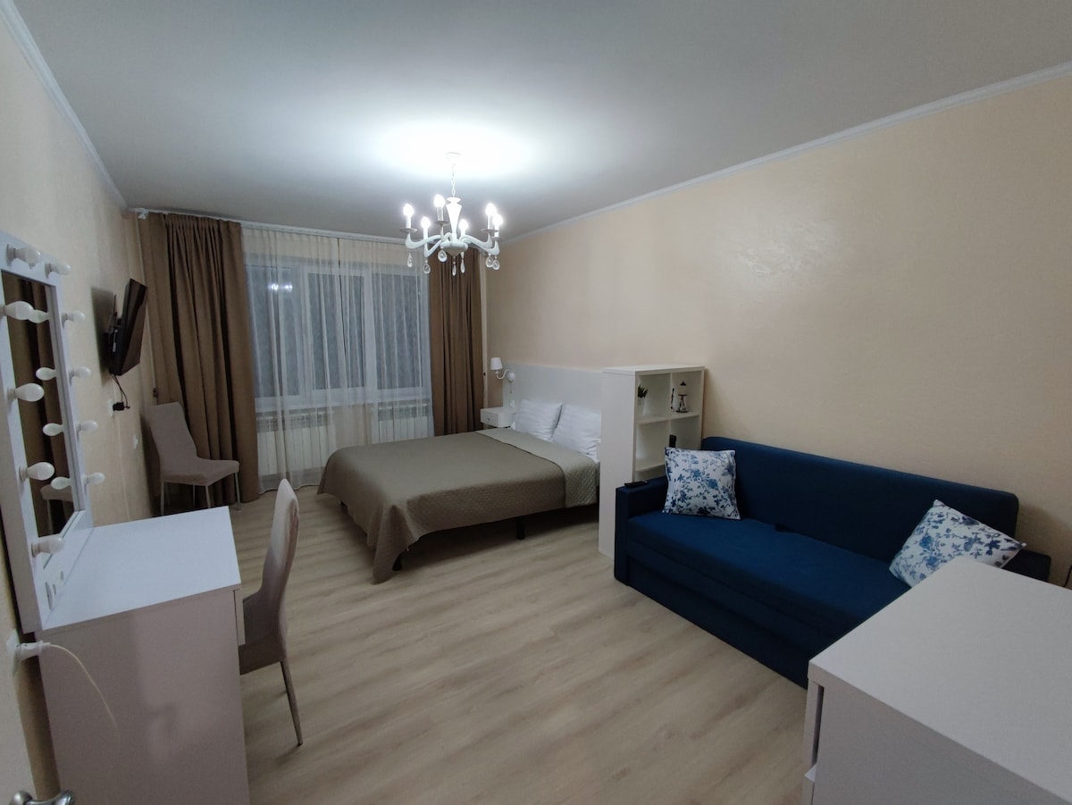 Наш уютный апартамент расположен в парковой зоне, всего в нескольких шагах от озера. Просторное жилье предлагает отдельную спальню и уютную гостиную, идеально подходящую для отдыха после насыщенного дня. Насладитесь утренним кофе с видом на парк или прогуляйтесь по обширной природной территории вокруг озера. Мы предоставляем все необходимое для комфортного проживания, включая полностью оборудованную кухню, бесплатный Wi-Fi и удобное расположение недалеко от центра. Добро пожаловать!